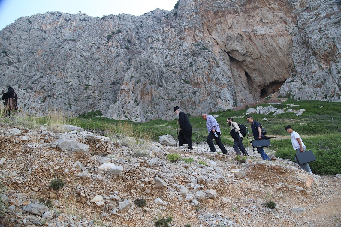 Η μετάβαση στον κλειστό όρμο της Βαράσοβας έγινε με βάρκες κατοίκων του χωριού από την Κάτω Βασιλική με πορεία πλάι στα εντυπωσιακά άγρια βράχια του βουνού που βυθίζονται κάθετα στην θάλασσα.