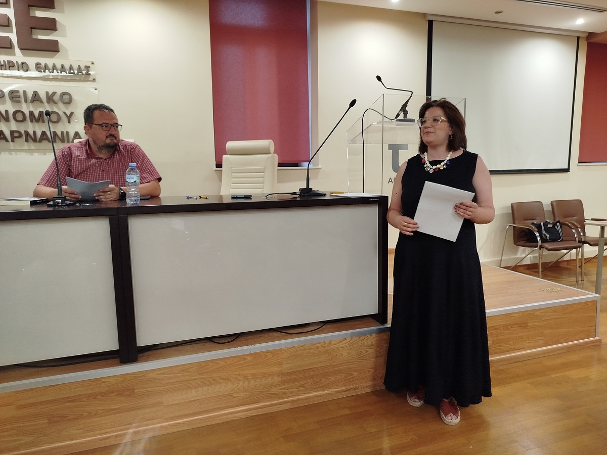 Για το βιβλίο μίλησαν η κα Ηρώ Καλέση, Φιλόλογος, ο κ. Στέλιος Μερμίγκης, Φαρμακοποιός του Νοσοκομείου Αγρινίου, αποσπάσματα από το βιβλίο διάβασε ο Αρχιτέκτονας Λεωνίδας Φραγκούλης και ο ίδιος ο συγγραφέας. Προλόγισε η κα Ματίνα Δάμπλια.