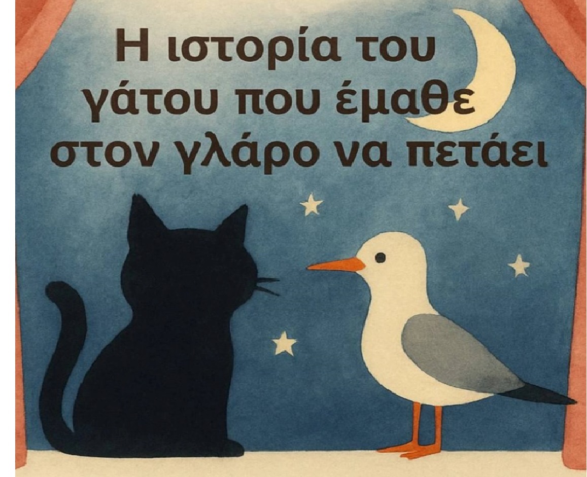 Η θεατρική παράσταση - δραματοποιημένη αφήγηση, “Ο γάτος που έμαθε σε έναν γλάρο να πετάει” βασισμένη στο βιβλίο του Λουίς Σεπούλβεδα, και σε διασκευή της Γεωργίας Καποπούλου, απευθύνεται σε μαθητές νηπιαγωγείων και δημοτικών, ενώ θα παιχθεί την Τρίτη 8 Ιουλίου στις 21.00 μ.μ. στο Hyper Park (Χρήστου Κυριλή, Αγρίνιο).