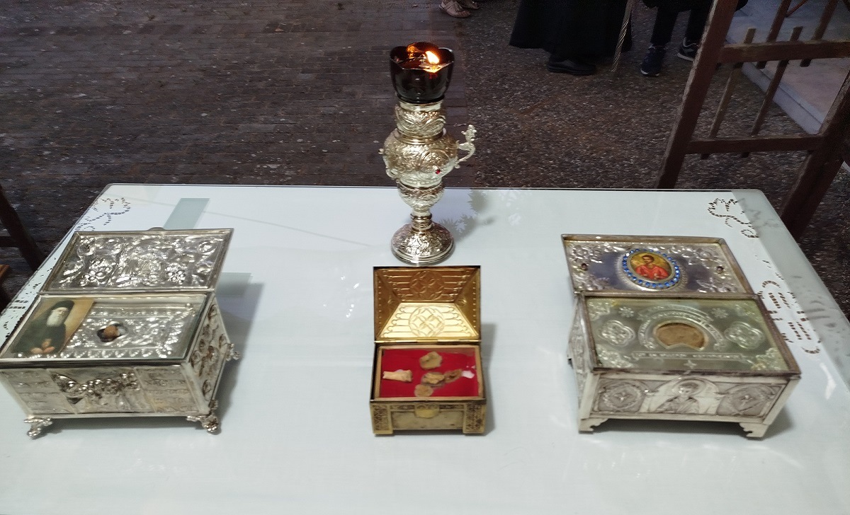 Κατά την Αγρυπνία έγινε στους πιστούς χρήση με Μεγάλο Ευχέλαιο, ενώ παρατέθηκαν για προσκύνηση, Ιερά Λείψανα του Αγίου Νεκταρίου, του Αγίου Ειρηναίου Λουγδούνου, Αγίου Ιωάννη Βραχωρίτη, Αγίου Ιωακείμ Ιθακησίου και των σφαγιασθέντων μαρτύρων της μονής Νταού Πεντέλης.