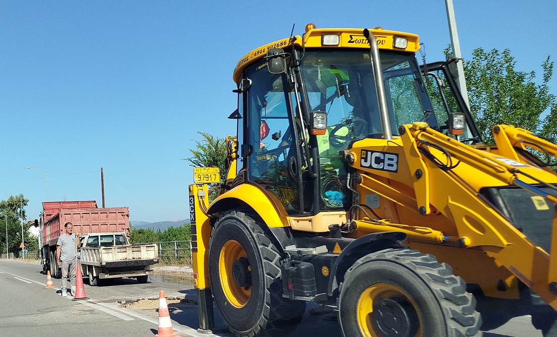 Για τρεις περίπου ώρες, όσο διήρκησαν οι εργασίες, η κυκλοφορία των οχημάτων στα δυο ρεύματα γίνονταν εκ περιτροπής.