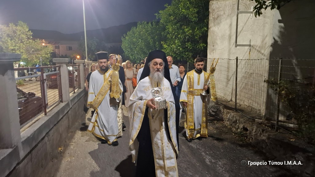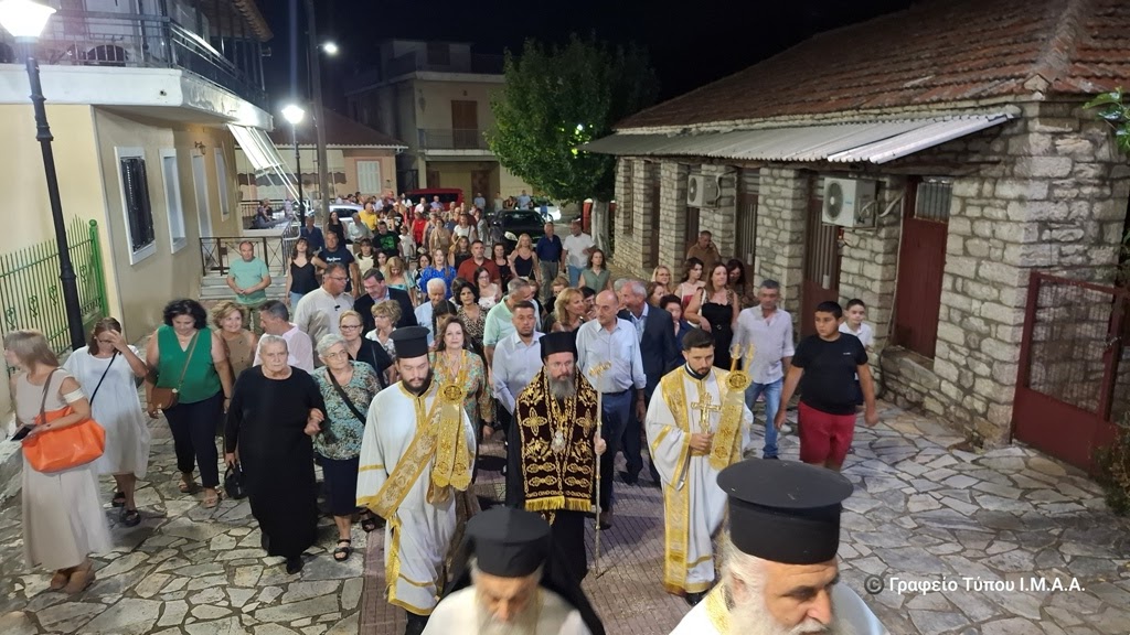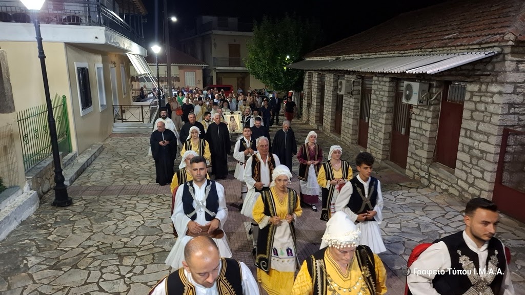 Ακολούθησε η λιτάνευση της Ιεράς Εικόνας και του Ιερού Λειψάνου του Αγίου στους δρόμους του χωριού.