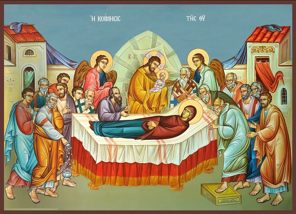 Γι’ αυτό και στην συνείδησή μας, η Μητέρα και διάκονος της όντως Ζωής δεν πέθανε, αλλά κεκοίμηται. Ο θάνατος δεν μπόρεσε να αποκτήσει εξουσία πάνω Της, όπως δεν είχαν ποτέ στην ζωή Της, ο εγωισμός και η κακία. Έτσι, η Κοίμησή Της είναι για μας πάντοτε αιτία χαράς, αφορμή πανηγύρεως, πρόγευση του Δείπνου της Ουράνιας Βασιλείας.