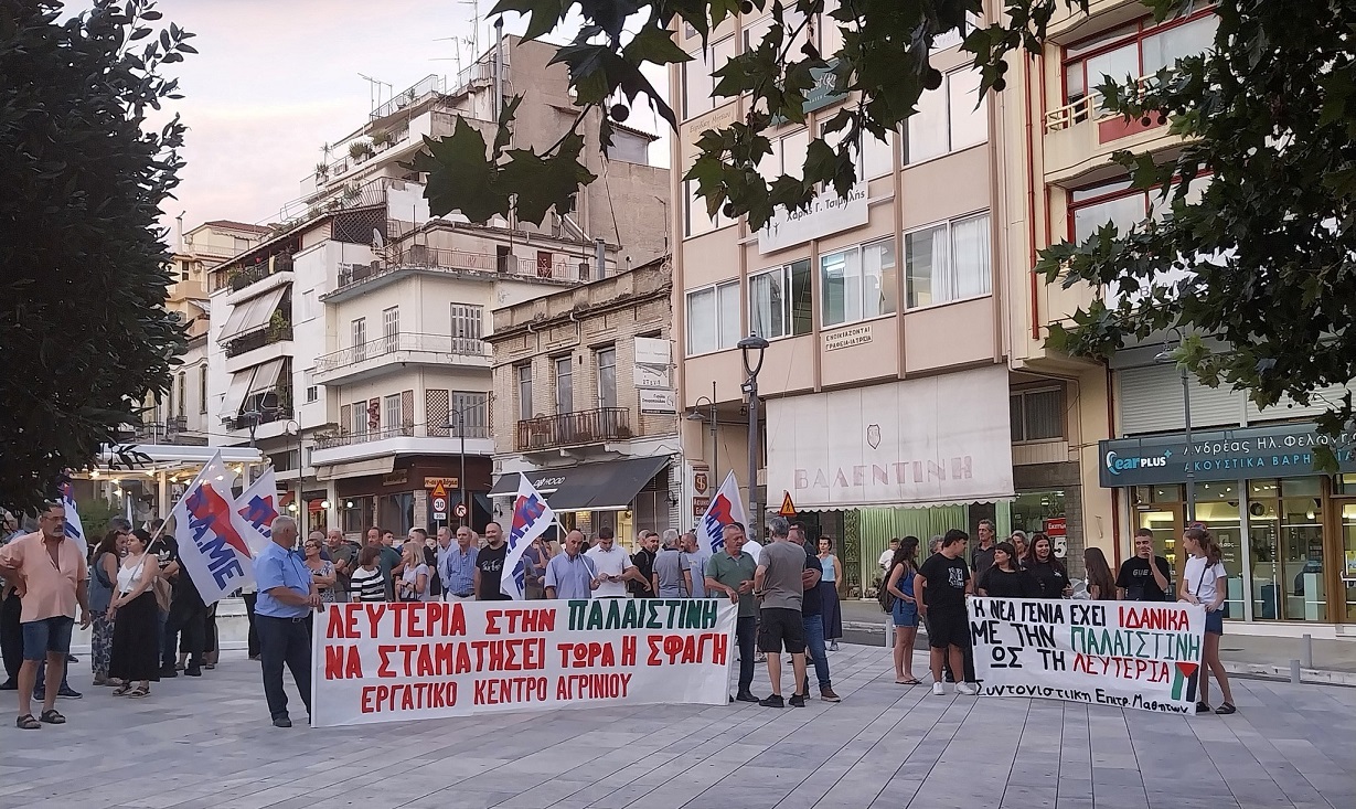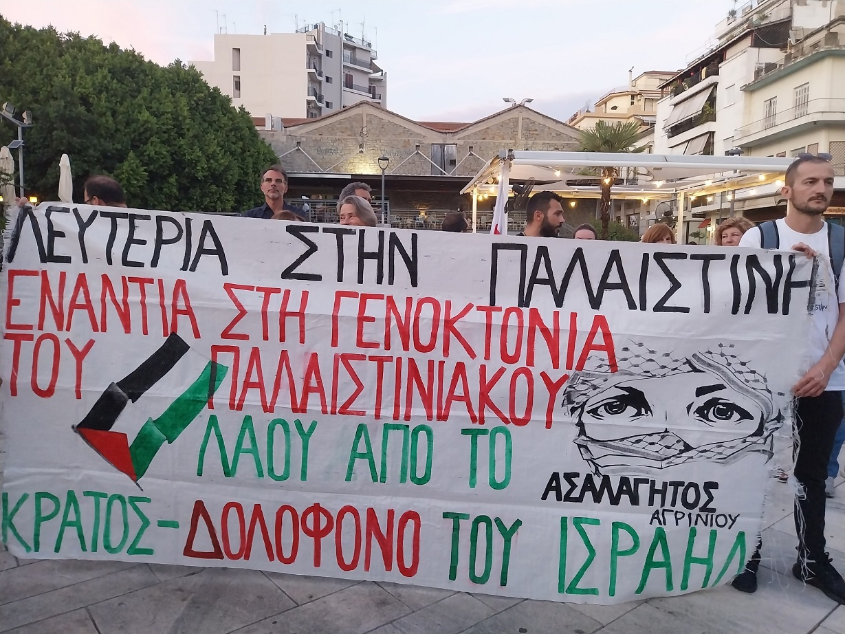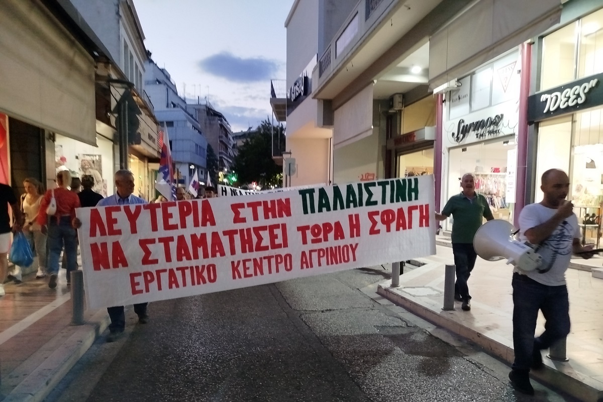 Με συμμετοχή πολλών πολιτών πραγματοποιήθηκε σήμερα κινητοποίηση από το Εργατικό Κέντρο Αγρινίου, ώστε να εκφράσει αλληλεγγύη στον λαό της Παλαιστίνης.