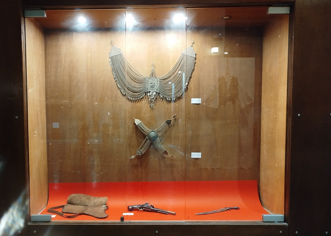 Περιλαμβάνει παραδοσιακές ανδρικές και γυναικείες φορεσιές από την Αιτωλοακαρνανία καθώς και άλλες περιοχές της Ελλάδας, οπλισμό και κοσμήματα φορεσιών, ενώ εκτίθενται και στολές που προσέφεραν τα ξένα χορευτικά συγκροτήματα που συμμετέχουν στο φετινό φεστιβάλ.