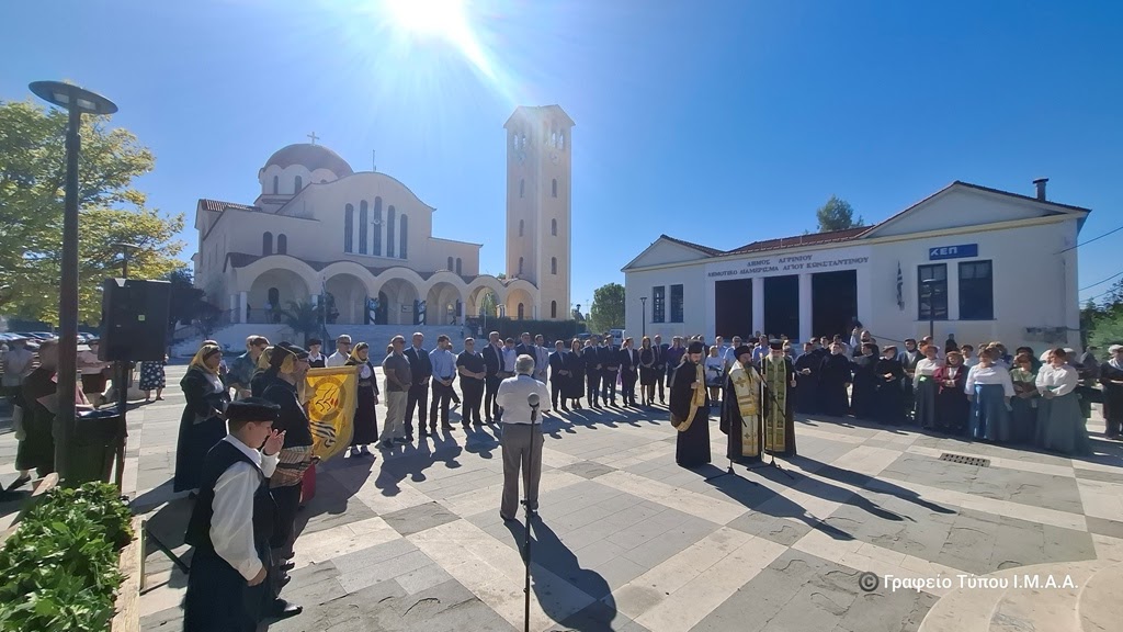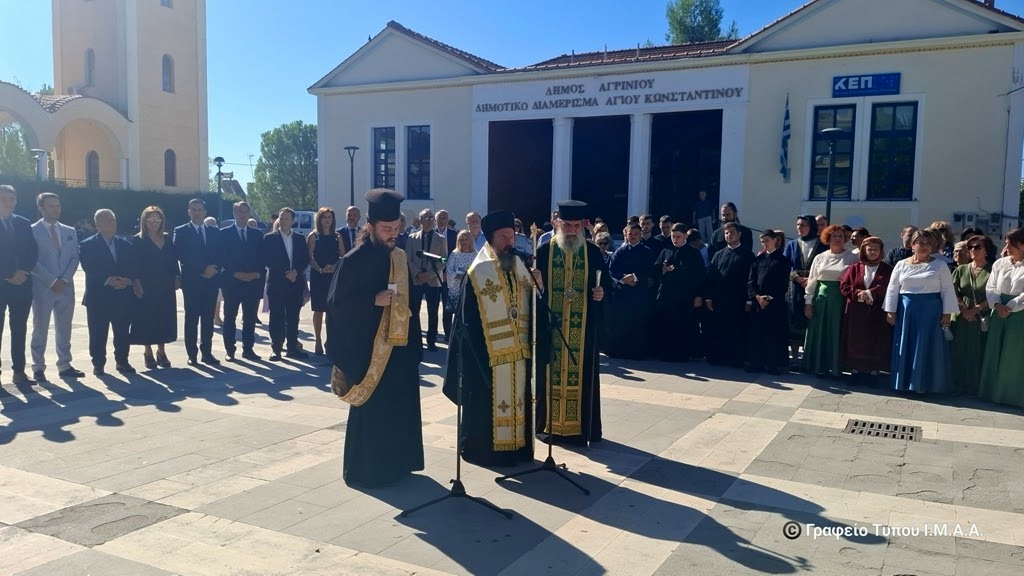 Στο τέλος της Θείας Λειτουργίας τελέστηκε ιερό μνημόσυνο στην μνήμη των Μαρτύρων της Μικρασιατικής τραγωδίας και των προσφύγων, που έφθασαν στην Αιτωλοακαρνανία και δημιούργησαν τον προσφυγικό οικισμό του Αγίου Κωνσταντίνου στο Αγρίνιο.