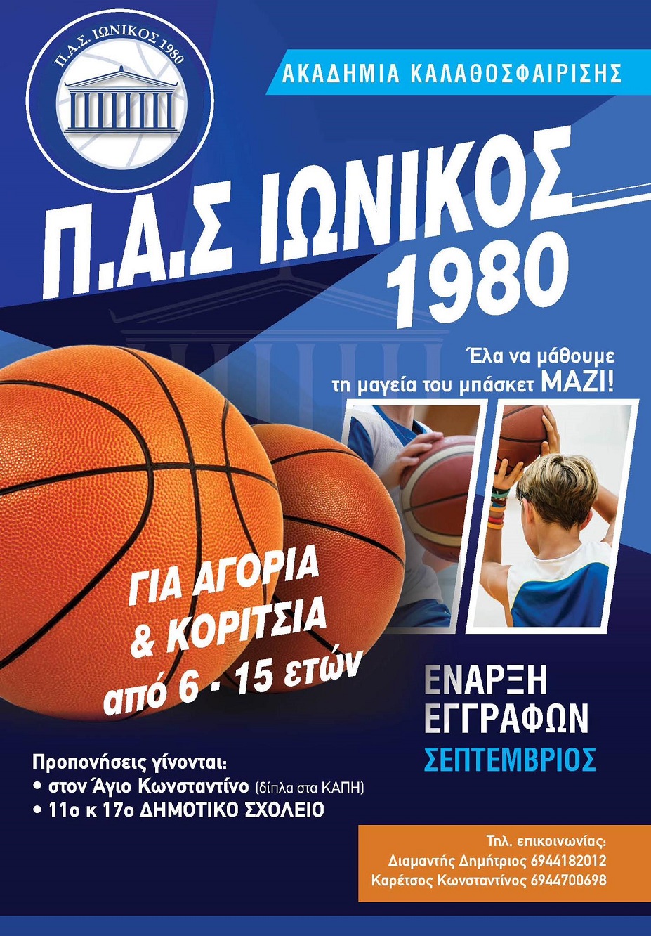 Ο ΠΑΣ Ιωνικός 1980 θα ήθελε να σας ενημερώσει για την έναρξη των προπονήσεων μπάσκετ των ακαδημιών του.