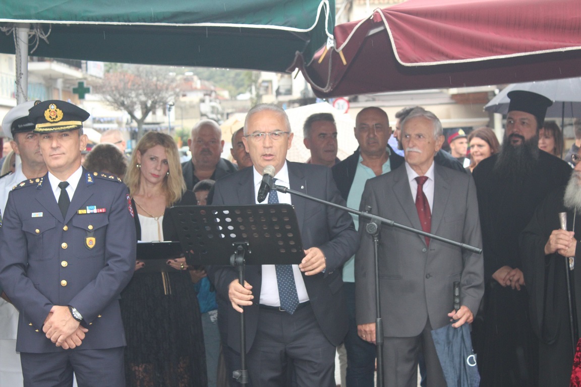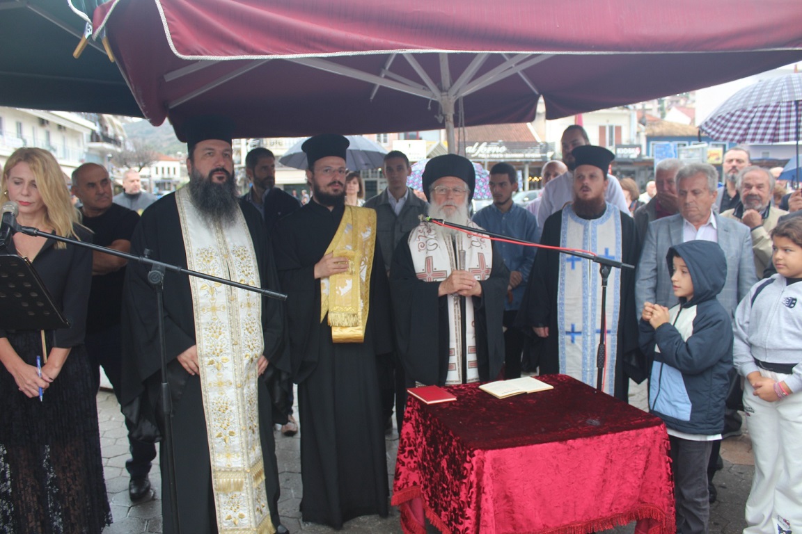 Χαιρετισμό απεύθυναν ο Δημάρχος Αμφιλοχίας, κ. Σάκης Τορουνίδης, ο εκπρόσωπος της κυβέρνησης, υφυπουργός Εργασίας, Κωνσταντίνος Καραγκούνης και ο γλύπτης που φιλοτέχνησε το έργο, κ. Ευάγγελος Τύμπας.