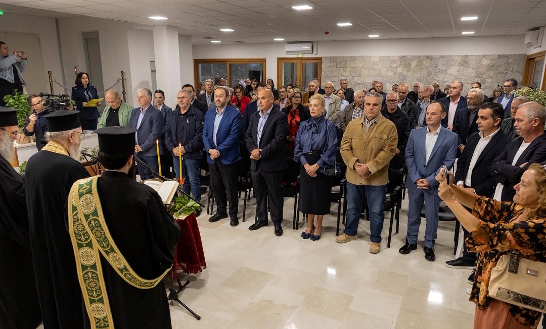 Τον αγιασμό τέλεσε ο Γενικός Αρχιερατικός Επίτροπος της Μητρόπολης Ναυπάκτου και Αγίου Βλασίου, π. Θωμάς Βαμβίνης, ο οποίος στη συνέχεια απηύθυνε χαιρετισμό ως εκπρόσωπος του Μητροπολίτη κ.κ. Ιεροθέου.
