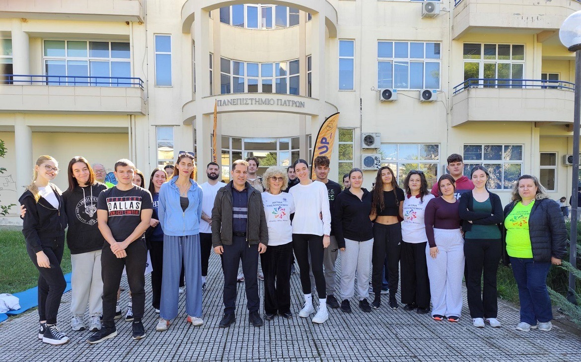 Την Πέμπτη 9 Οκτωβρίου στον προαύλιο χώρο του Πανεπιστημίου, πραγματοποιήθηκε από την κα Αλεξάνδρα Μαρκάτη, Διδάκτωρ Αθλητικής Ψυχολογίας και τους συνεργάτες της, ένα διαδραστικό πρόγραμμα, που συνδύαζε παιδαγωγικό παιχνίδι, αθλητική δράση και δημιουργική κίνηση (Action Fit). Μέσα από τα παιχνίδια γνωριμίας, τις ομαδικές δοκιμασίες και τις αθλητικές δραστηριότητες, οι φοιτητές είχαν την ευκαιρία να συνεργαστούν, να ενεργοποιηθούν σωματικά και να αναπτύξουν πνεύμα ομάδας. Μια εμπειρία γεμάτη ενέργεια, διασκέδαση και θετική διάθεση για το ξεκίνημα της φοιτητικής τους ζωής.