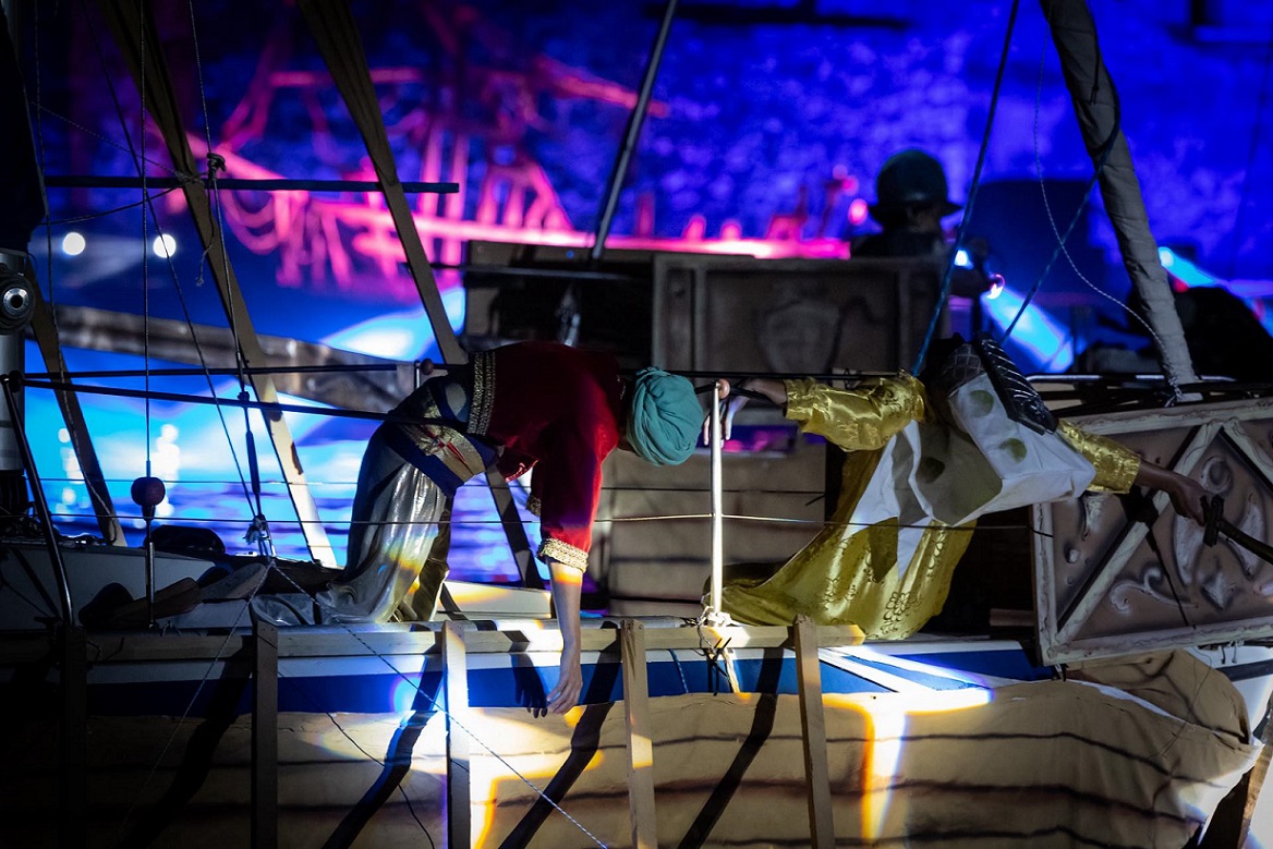 Το εμβληματικό Ενετικό Λιμάνι μεταμορφώθηκε σε σκηνικό ιστορικής αναβίωσης, όπου εικόνες, φως και ήχος συνέθεσαν μία μοναδική εμπειρία συγκίνησης και υπερηφάνειας. Η σκηνοθετική προσέγγιση του Δημήτρη Σιούντα συνδύασε θεατρικά δρώμενα, μουσική και εικαστικές παρεμβάσεις, αναδεικνύοντας με καλλιτεχνική ευαισθησία τα διαχρονικά μηνύματα που πηγάζουν από τη Ναυμαχία της Ναυπάκτου.