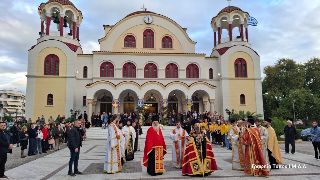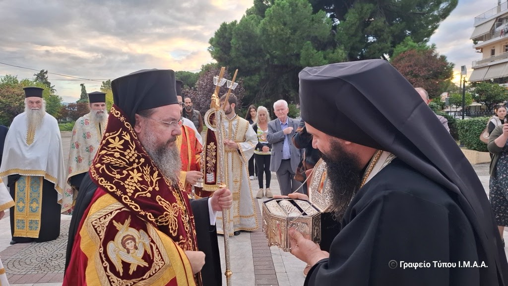 Σε πανηγυρική ατμόσφαιρα η πόλη του Αγρινίου και η Ενορία του Αγίου Δημητρίου υποδέχθηκαν απότμημα εκ του ιερού και μυροβλύζοντος Λείψανου του Αγίου ενδόξου Μεγαλομάρτυρος Δημητρίου, το απόγευμα της Δευτέρας 20ης Οκτωβρίου 2025.