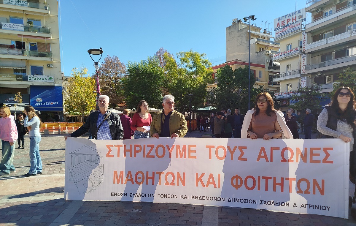 «Η Ένωση Γονέων και Κηδεμόνων Δημοσίων Σχολείων Δήμου Αγρίνιου εκφράζει την συμπαράστασή της στους μαθητές που προχωρούν σε πανελλαδικές κινητοποιήσεις την Πέμπτη 6 Νοεμβρίου 2025.