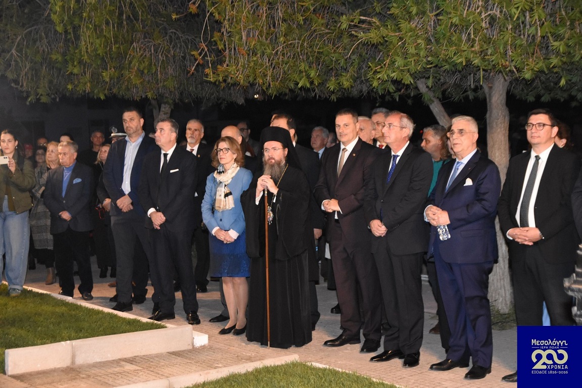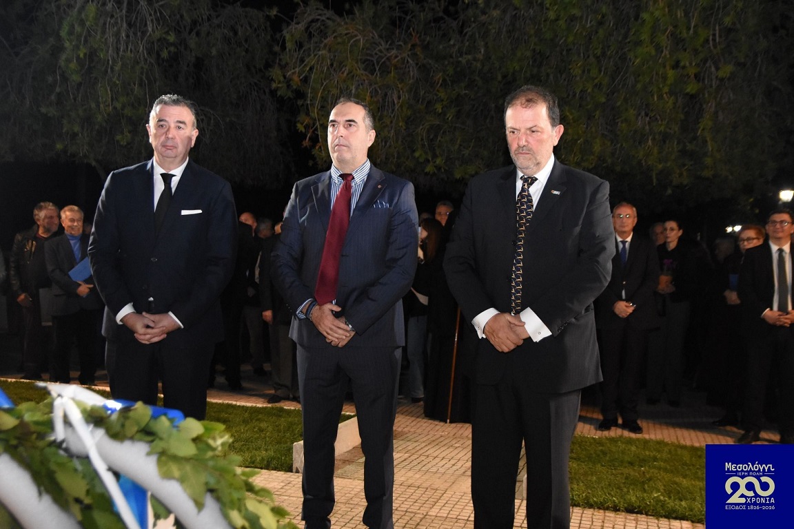 Στην εκδήλωση απεύθυναν χαιρετισμούς ο Δήμαρχος Ιερής Πόλης Μεσολογγίου, Σπύρος Διαμαντόπουλος, ο Σεβασμιώτατος Μητροπολίτης Αιτωλίας & Ακαρνανίας, κ.κ. Δαμασκηνός, η Πρόεδρος της ΕΣΗΕΑ, Μαρία Αντωνιάδου, ο Πρόεδρος της ΠΟΕΣΥ, Σωτήρης Τριανταφύλλου, ενώ στη συνέχεια τελέστηκε επιμνημόσυνη δέηση.