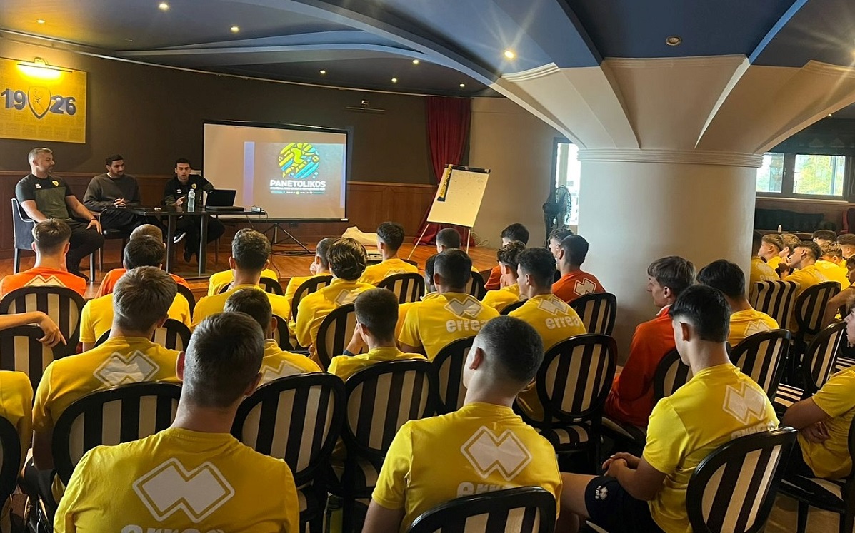 Τα Τμήματα Υποδομών του Παναιτωλικού παρακολούθησαν σήμερα (17/11) μια ιδιαίτερα ουσιαστική παρουσίαση με θέμα τη διαχείριση του άγχους στον αθλητισμό, με στόχο την ενίσχυση της ψυχικής ανθεκτικότητας και της σωστής νοοτροπίας των νεαρών ποδοσφαιριστών.