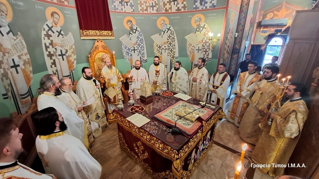 Το απόγευμα της Παρασκευής, ο Γενικός Αρχιερατικός Επίτροπος, Αρχιμ. Ιωσήφ Ζωγράφος, εκ προσώπου του Σεβασμιώτατου Ποιμενάρχου μας κ. Δαμασκηνού, ο οποίος ευρισκόταν στον Αστακό για τις εκδηλώσεις για τα 200 χρόνια από την Ναυμαχία του Δραγαμέστου, μετέφερε και κατέθεσε επί της Αγίας Τραπέζης τα ιερά μαρτυρικά Λείψανα, κατά την τάξη της Εκκλησίας και κατόπιν προεξήρχε στην Ακολουθία του Εσπερινού των Εγκαινίων, με την συμμετοχή Κληρικών της πόλεως του Αγρινίου.