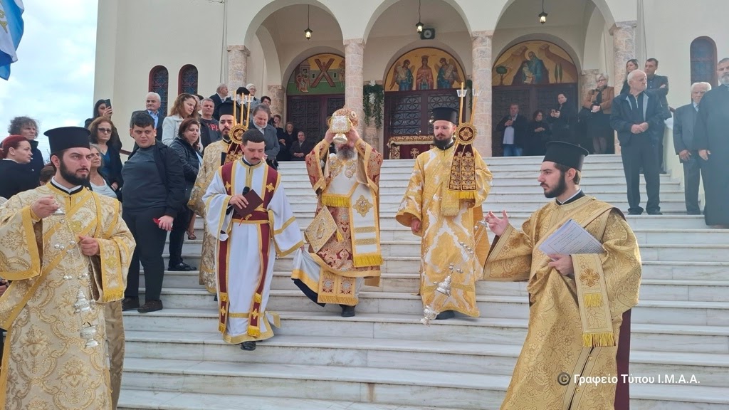Ο Σεβασμιώτατος απένειμε το οφφίκιο του Πρωτοπρεσβυτέρου στον π. Αναστάσιο Αυγέρη, Εφημέριο του Ιερού Ναού, ευχόμενος να συνεχίσει την διακονία του με σύνεση και υπακοή στην Εκκλησία και στον Επίσκοπό του και να του υπενθυμίζει ο Τίμιος Σταυρός, ότι η ιερατική ζωή είναι κένωση και θυσία υπέρ των αδελφών μας.