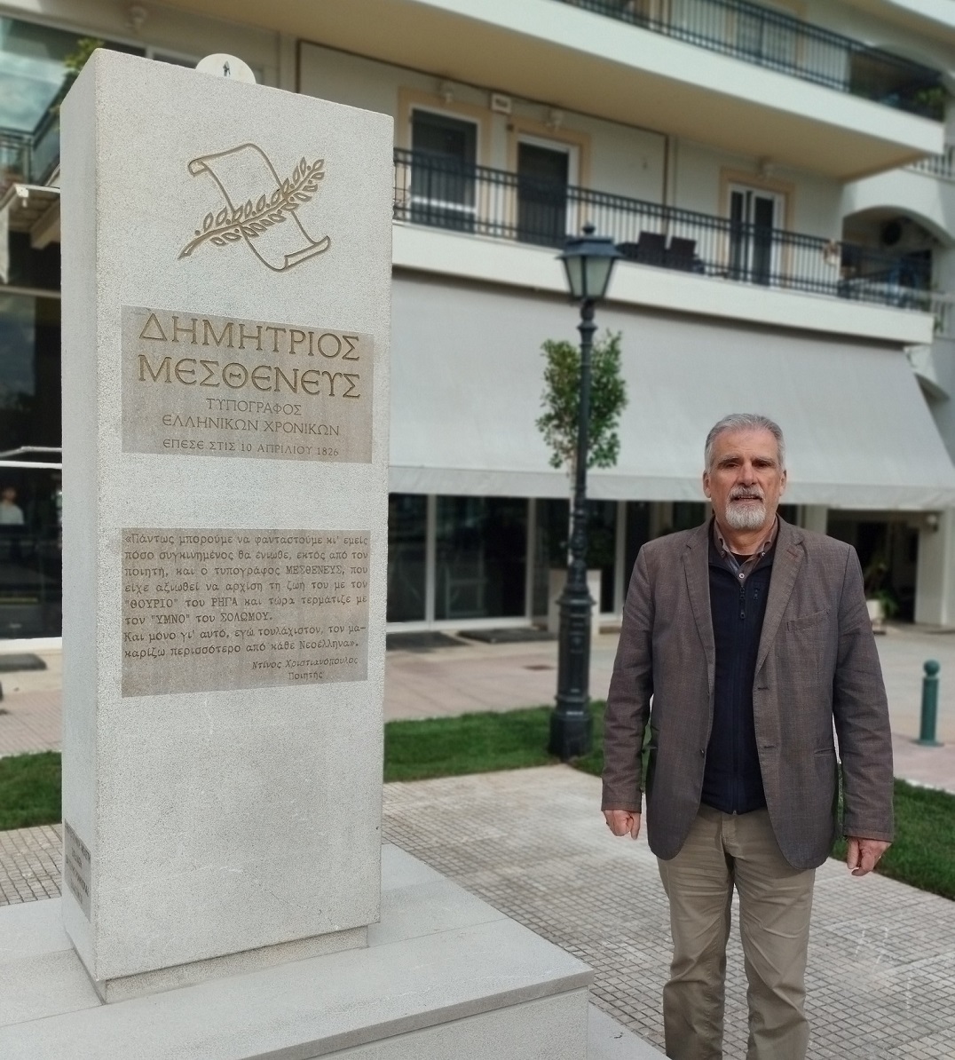 Ο Δήμαρχος Ιερής Πόλης Μεσολογγίου, Σπύρος Διαμαντόπουλος, βράβευσε τον Καθηγητή του Πανεπιστημίου Πατρών, κ. Αριστογιάννη Γαρμπή, για την ουσιαστική του συνεισφορά στην υλοποίηση του μνημείου προς τιμήν του Δημητρίου Μεσθενέα, συνεργάτη του Ιωάννη-Ιάκωβου Μάγερ και τυπογράφο των «Ελληνικών Χρονικών» και του «Ύμνου εις την Ελευθερίαν», σήμερα, Τρίτη 25 Νοεμβρίου 2025.