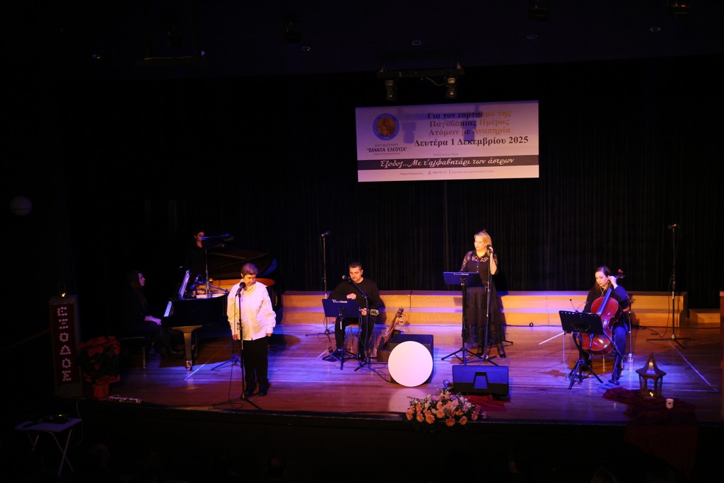 Το Εργαστήρι Ειδικής Επαγγελματικής Αγωγής και Αποκαταστάσεως «Παναγία Ελεούσα» για άτομα με νοητική αναπηρία (Μεσολόγγι-Αγρίνιο), στο πλαίσιο του εορτασμού της Παγκόσμιας Ημέρας των Ατόμων με Αναπηρία πραγματοποίησε με επιτυχία την Δευτέρα 1η Δεκεμβρίου 2025, στο Παπαστράτειο Μέγαρο Αγρινίου, την εκδήλωση: «Έξοδος...Με τ’ αλφαβητάρι των άστρων».