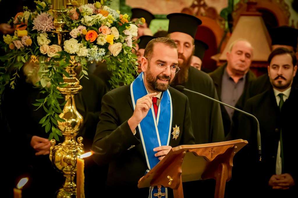 Μιλώντας για τις εργασίες ανακαίνισης ανέφερε: «Σε αυτή την πορεία αναγέννησης του Μητροπολιτικού μας Ναού, οφείλουμε να αναγνωρίσουμε με σεβασμό την καθοριστική συμβολή του Σεβασμιωτάτου Μητροπολίτου Αιτωλίας και Ακαρνανίας κ.κ. Δαμασκηνού. Με συνέπεια, προσωπικό μόχθο και αθόρυβη επιμονή, εργάστηκε για την ολοκλήρωση μιας ανακαίνισης που δεν περιορίστηκε σε τεχνικές παρεμβάσεις, αλλά απέδωσε στο Μεσολόγγι έναν ναό αντάξιο της ιστορίας του. Το αποτέλεσμα είναι λαμπρό και ουσιαστικό· ένας χώρος που αποπνέει αξιοπρέπεια, φροντίδα και βαθιά επίγνωση της πνευματικής κληρονομιάς που υπηρετεί».