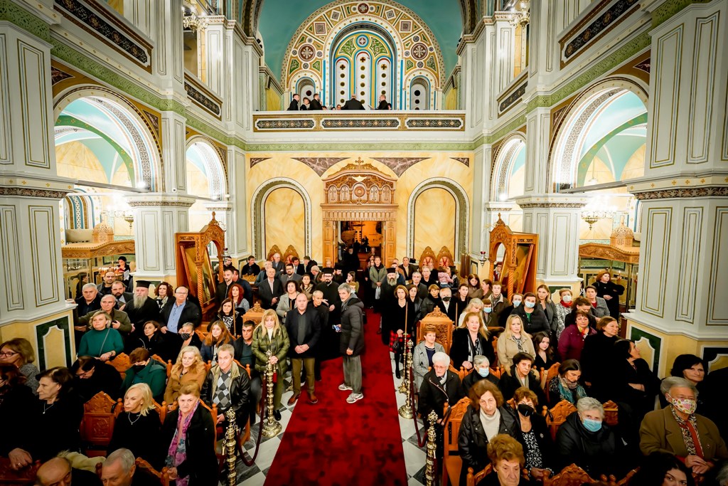 Μετά τον Αγιασμό, ο Προϊστάμενος του Ιερού Ναού, Πρωτοπρ. Κωνσταντίνος Δημητρίου απηύθυνε χαιρετισμό κατά τον οποίο αναφέρθηκε στην ιστορία και την ανοικοδόμηση του σημερινού Ναού, στην ίδια θέση που ήταν και ο προηγούμενος Ναός πολύ πριν την Επανάσταση του 1821.