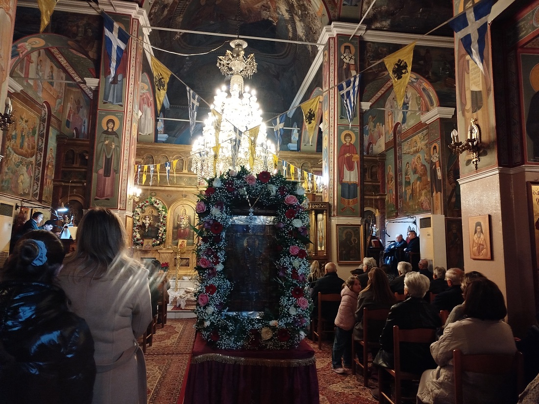 Λόγω του άστατου καιρού, η Ιερή Εικόνα του Αγίου Νικολάου δεν μεταφέρθηκε ως είθισται, με πομπή στον παλιό κοιμητηριακό ναό, όπως συνέβαινε άλλες χρονιές, αλλά έγινε περιφορά της στον προαύλιο χώρο, από τον ιερέα π. Θεοδόσιο Αθανασόπουλο και τους ιεροψάλτες, ενώ την εικόνα κρατούσαν νέοι του χωριού μας, με τους κατοίκους να ακολουθούν και στη συνέχεια τοποθετήθηκε για προσκύνημα στον πρόναο.