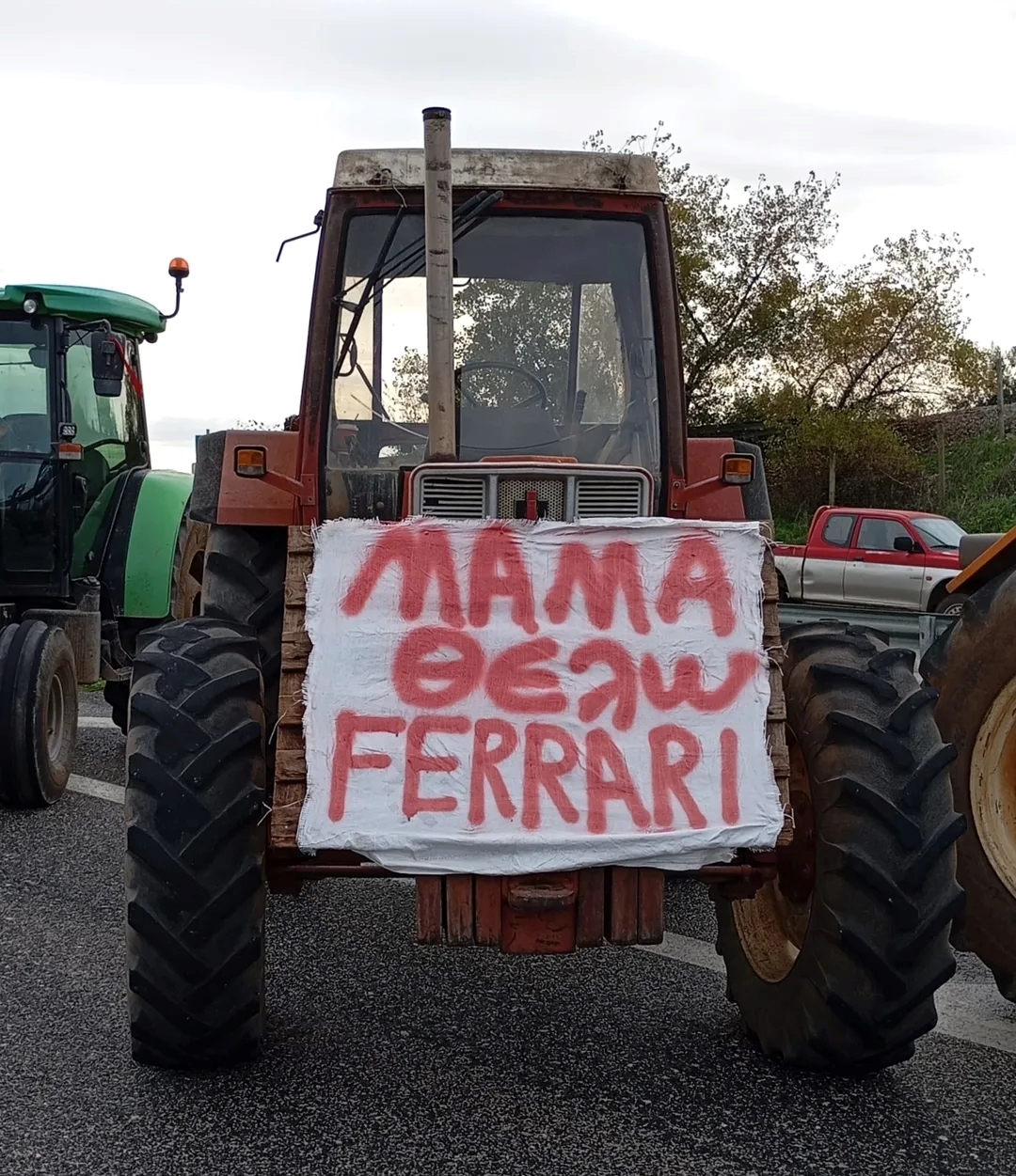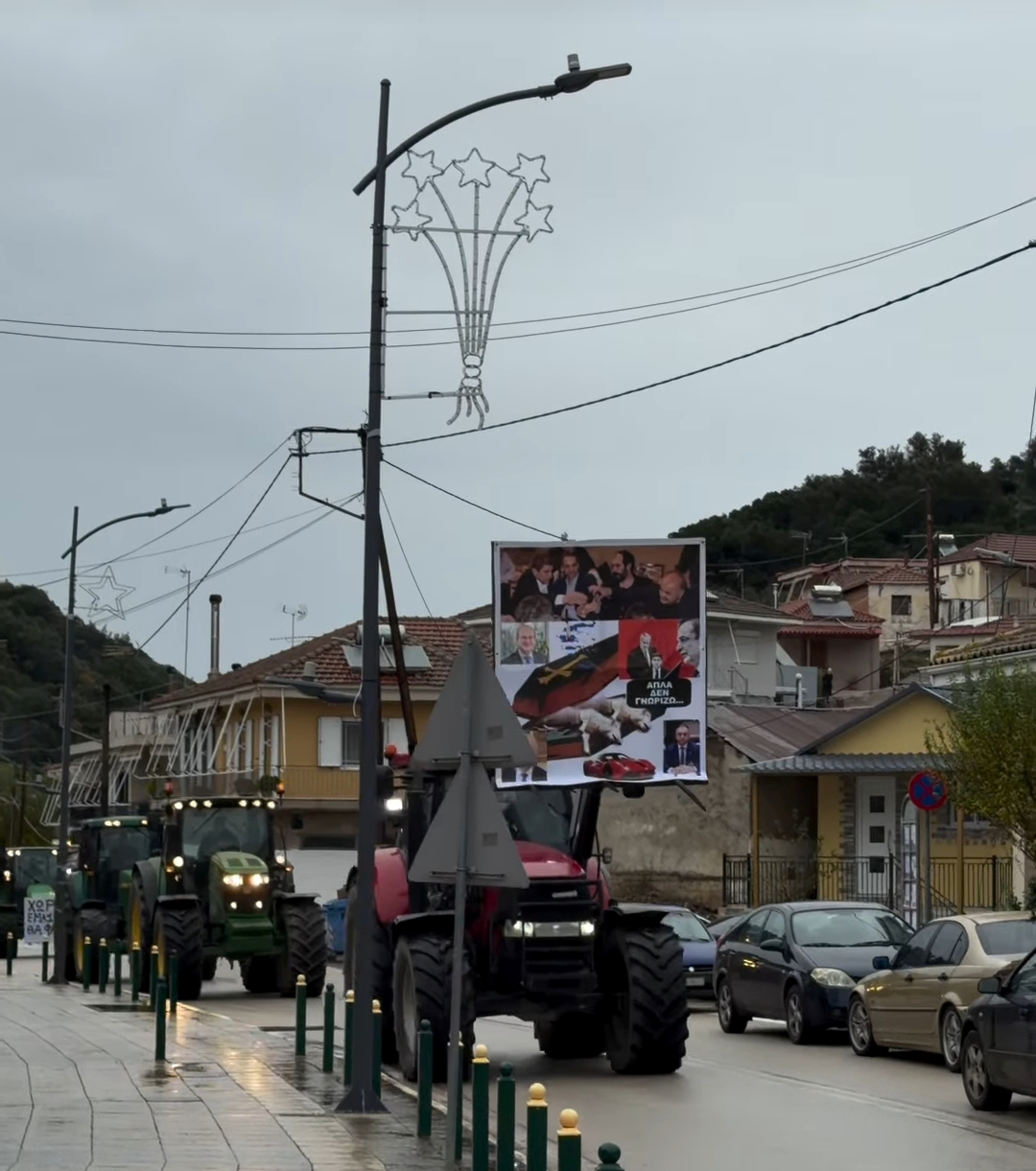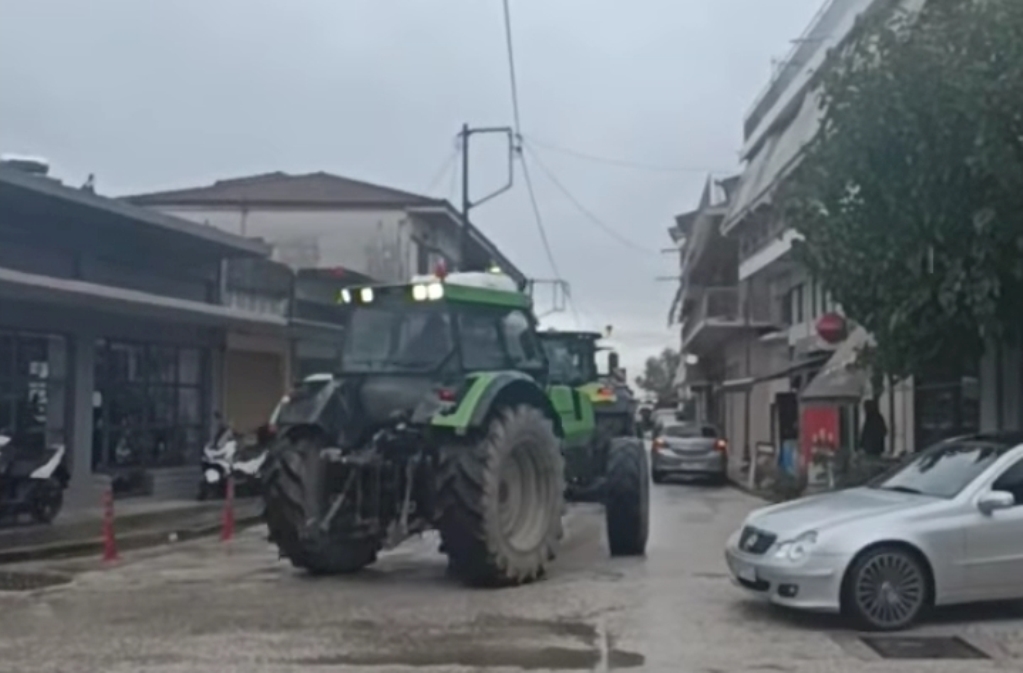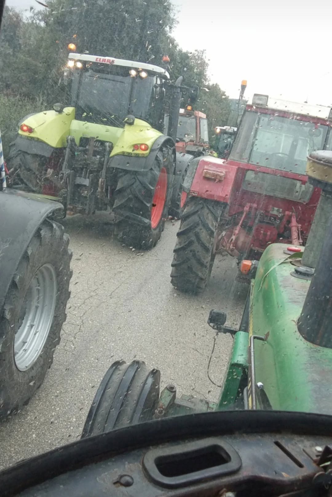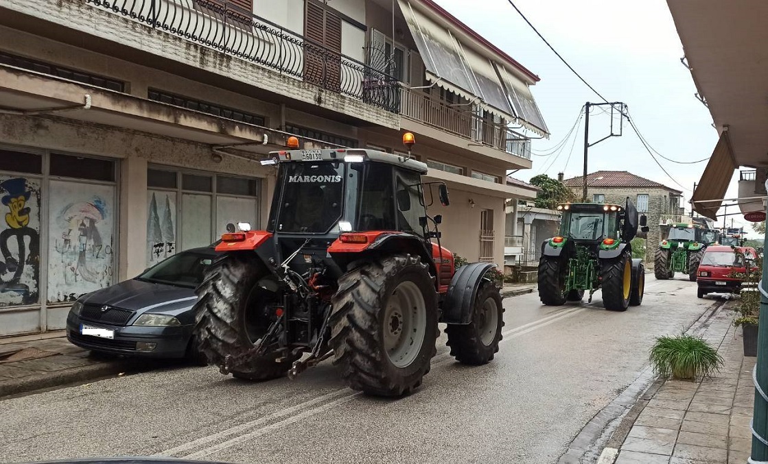 Αγρότες και κτηνοτρόφοι της περιοχής Καλυβίων λαμβάνουν μέρος με τα τρακτέρ τους στην αγροτική συγκέντρωση διαμαρτυρίας.