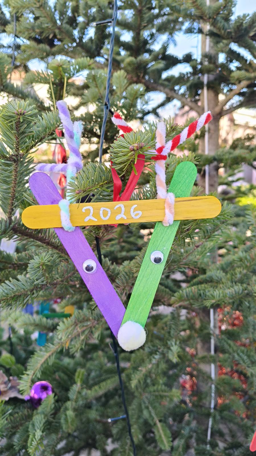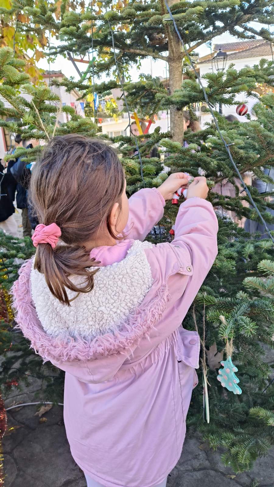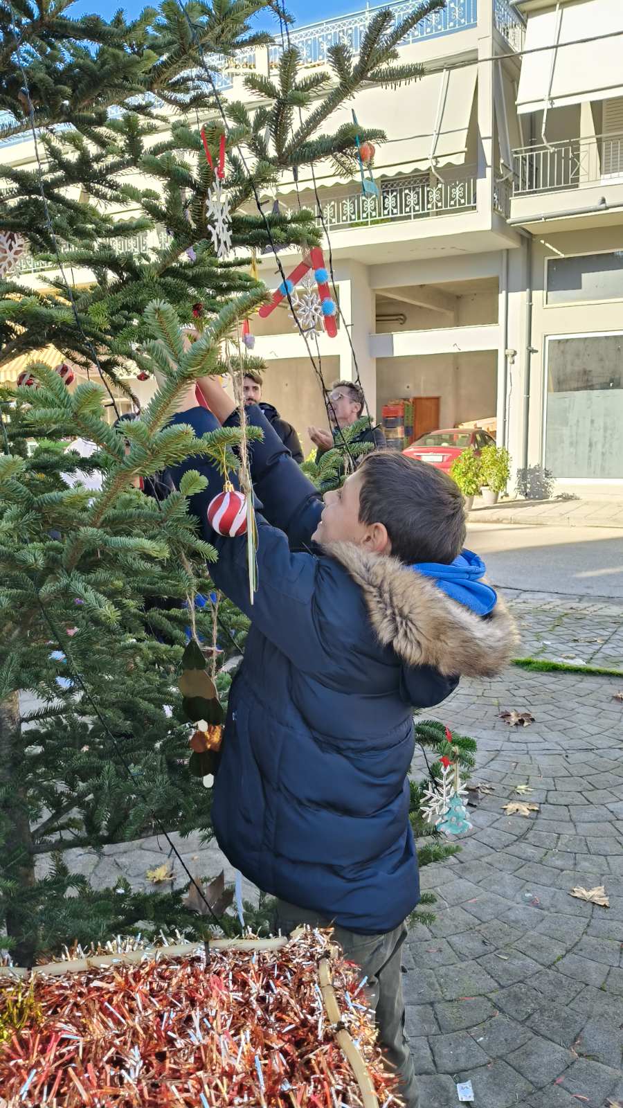Τους υποδέχτηκε με χαρά, ο εκπρόσωπος και Τοπικός Σύμβουλος της Κοινότητας Καλυβίων, Δημήτρης Τριανταφυλλάκης, κατόπιν τοποθέτησαν τα στολίδια στο μικρό έλατο και τους προσφέρθηκαν χυμοί.