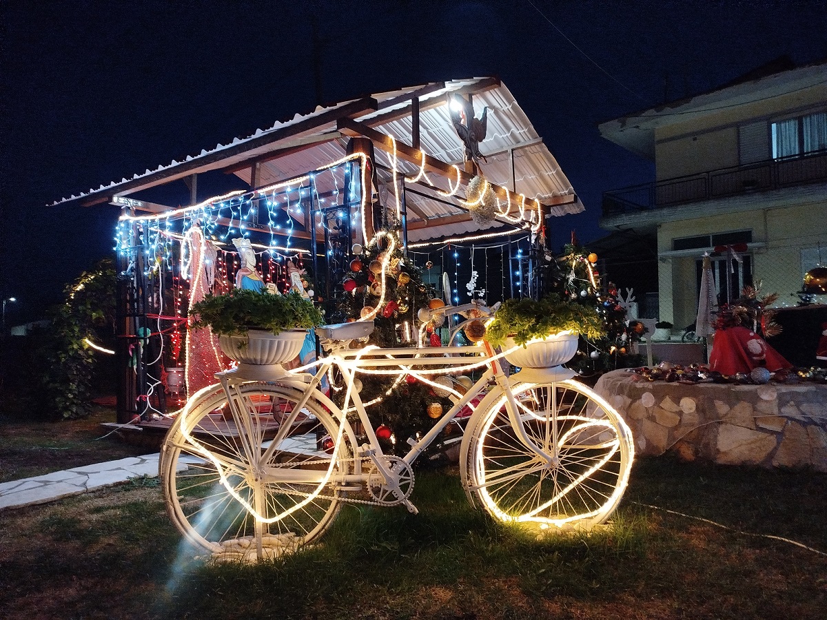 Επίσης, ξεχωρίζουν οι συνθέσεις με το έλκηθρο του Αη Βασίλη, με τις φιγούρες του ασπρομάλλη παππού να κυριαρχούν στο χώρο, τα ποδήλατα στολισμένα με φωτιστικές γιρλάντες, αψίδες αναρριχητικών με λαμπιόνια, το παλιό πηγάδι και οι βρύσες φωτισμένα, ένα πολύχρωμο καράβι και λαμπιόνια παντού, τα οποία δημιουργούν ένα φαντασμαγορικό θέαμα!