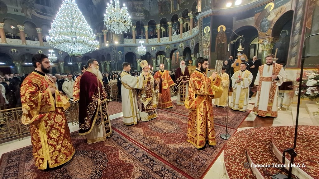 Συλλειτούργησαν οι εφημέριοι του Ναού, Πρωτοπρεσβύτερος Κωνσταντίνος Καντάνης και Οικον. Γεώργιος Παππάς, ο Αρχιδιάκονος Δημήτριος Λαγούδης και οι Διάκονοι π. Ιγνάτιος Γοργολίτσας, π. Σωκράτης Σχίζας και π. Βαρθολομαίος Κοσμάς. Τα ιερά αναλόγια διηκόνησαν χοροί ιεροψαλτών, υπό την διεύθυνση του Πρωτοψάλτου κ. Ανδρέα Αγγελή και του Λαμπαδαρίου, κ. Πέτρου Καραγιάννη.