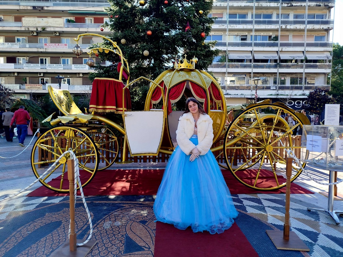Η άμαξα της Σταχτοπούτας μαζί με την βασίλισσα, βρίσκονταν το πρωί του Σαββάτου στην πλατεία Δημοκρατίας Αγρινίου, δίπλα στο χριστουγεννιάτικο δένδρο, για καλό σκοπό.
