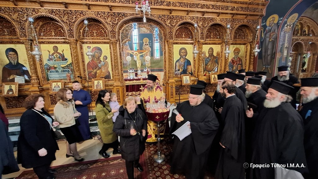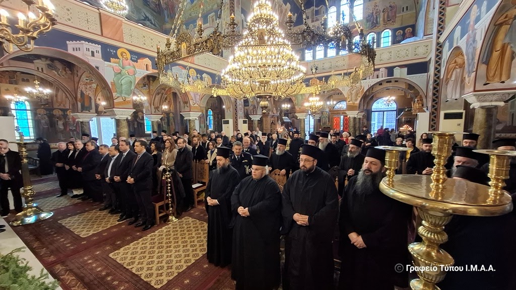 Στις 10:00’ το πρωί πραγματοποιήθηκε η τελετή στον Ιερό Μητροπολιτικό Ναό Αγίου Σπυρίδωνος Ιεράς Πόλεως Μεσολογγίου. Συμμετείχαν ο Αρχιερατικός Επίτροπος Μεσολογγίου Αρχιμ. Αναστάσιος Καντάνης και ο Αρχιερατικός Επίτροπος Αστακού, Αρχιμ. Δαυίδ Μπαζούλας, οι Εφημέριοι των Αρχιερατικών Περιφερειών Μεσολογγίου και Αστακού, οι Άρχοντες του τόπου, μεταξύ των οποίων ο Δήμαρχος Ιεράς Πόλεως Μεσολογγίου κ. Σπυρίδων Διαμαντόπουλος, ο Αντιπεριφερειάρχης Αιτωλοακαρνανίας κ. Θανάσης Μαυρομμάτης, ο Ανώτερος Διοικητής Φρουράς Μεσολογγίου, ο Αστυνομικός Διευθυντής Αιτωλίας, ο Διοικητής Π. Υ. Ν. Αιτωλοακαρνανίας, ο Λιμενάρχης Μεσολογγίου, Αντιδήμαρχοι, Δημοτικοί Σύμβουλοι, Πρόεδροι Τοπικών Κοινοτήτων, εκπρόσωποι τοπικών Συλλόγων και Φορέων και ο πιστός λαός.