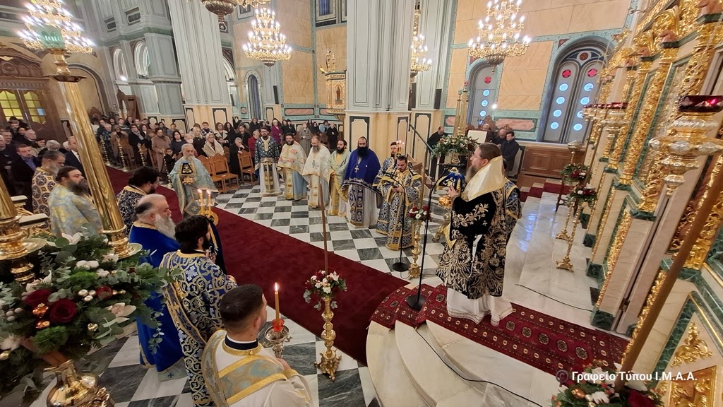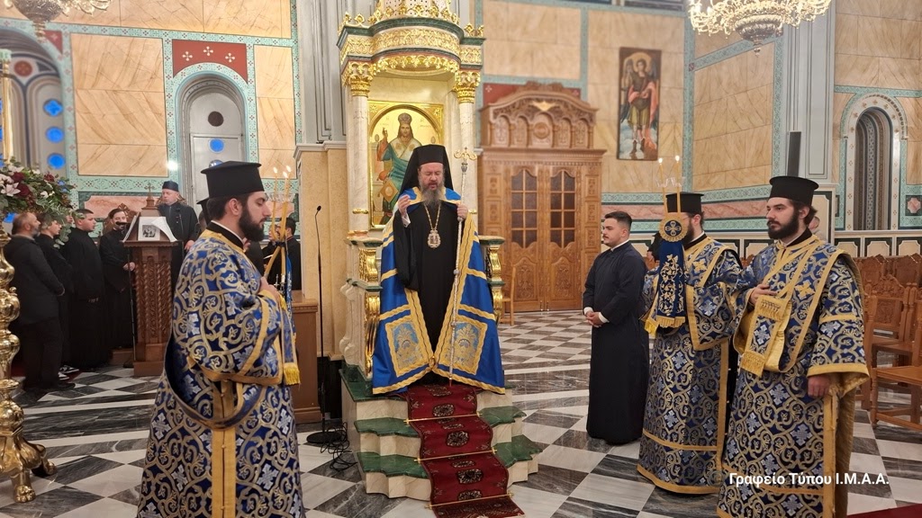 Στον Ιερό Μητροπολιτικό Ναό Αγίου Σπυρίδωνος, στην Ιερά Πόλη του Μεσολογγίου, το πρωί της Κυριακής, 4 Ιανουαρίου 2026 τελέσθηκαν η ακολουθία του Όρθρου και η πανηγυρική Αρχιερατική Θεία Λειτουργία, προεξάρχοντος του Σεβασμιωτάτου Μητροπολίτου Αιτωλίας και Ακαρνανίας κ. Δαμασκηνού.