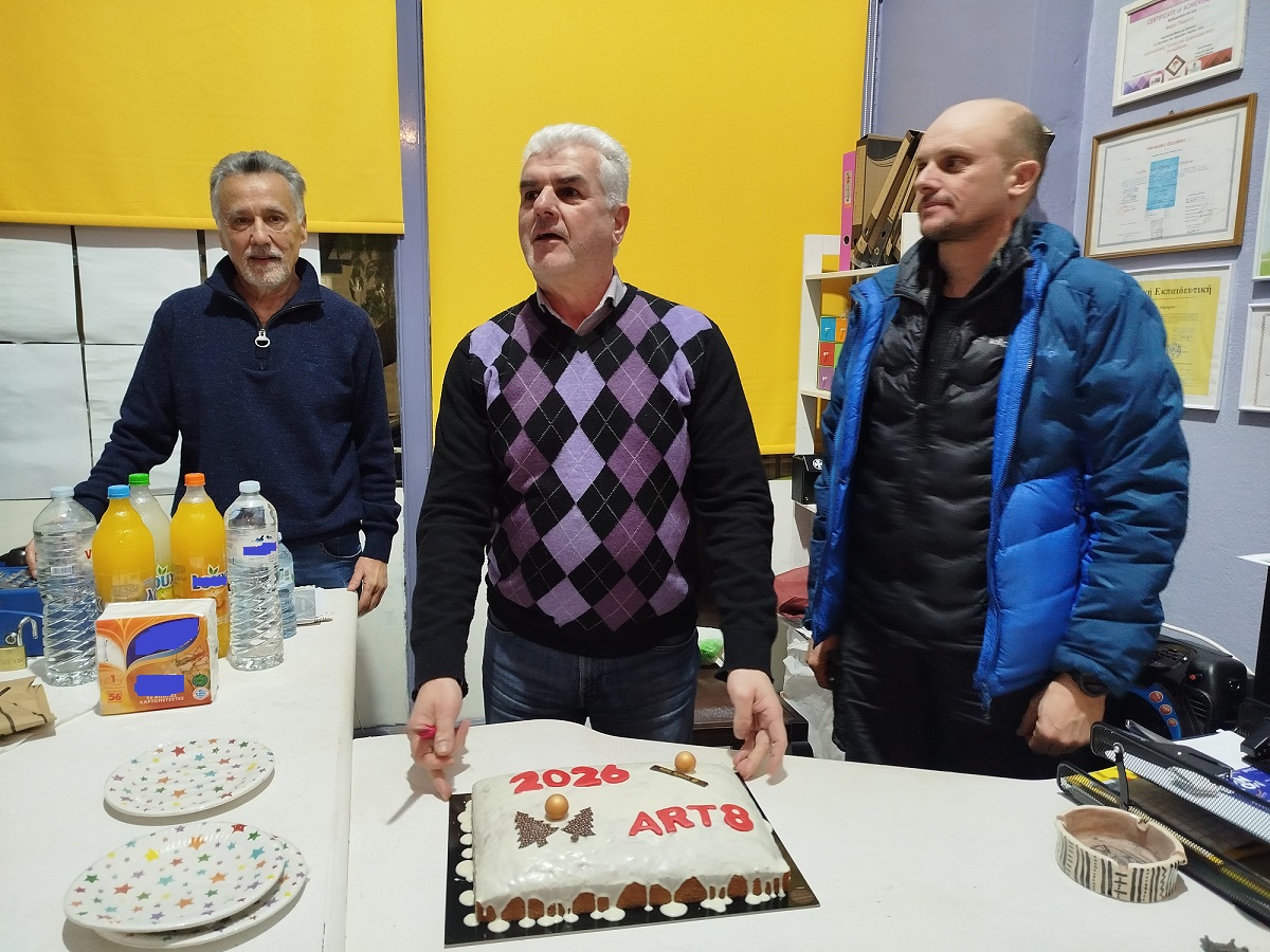 Στο τέλος της συνάντησης τα 26 μέλη της Φωτογραφικής Ομάδας Art8, τα οποία είναι και μέλη του Photopolis, έκοψαν την καθιερωμένη βασιλόπιτα για το 2026, ανταλλάσοντας ευχές για Υγεία και όμορφες φωτογραφικές λήψεις και στη νέα χρονιά.