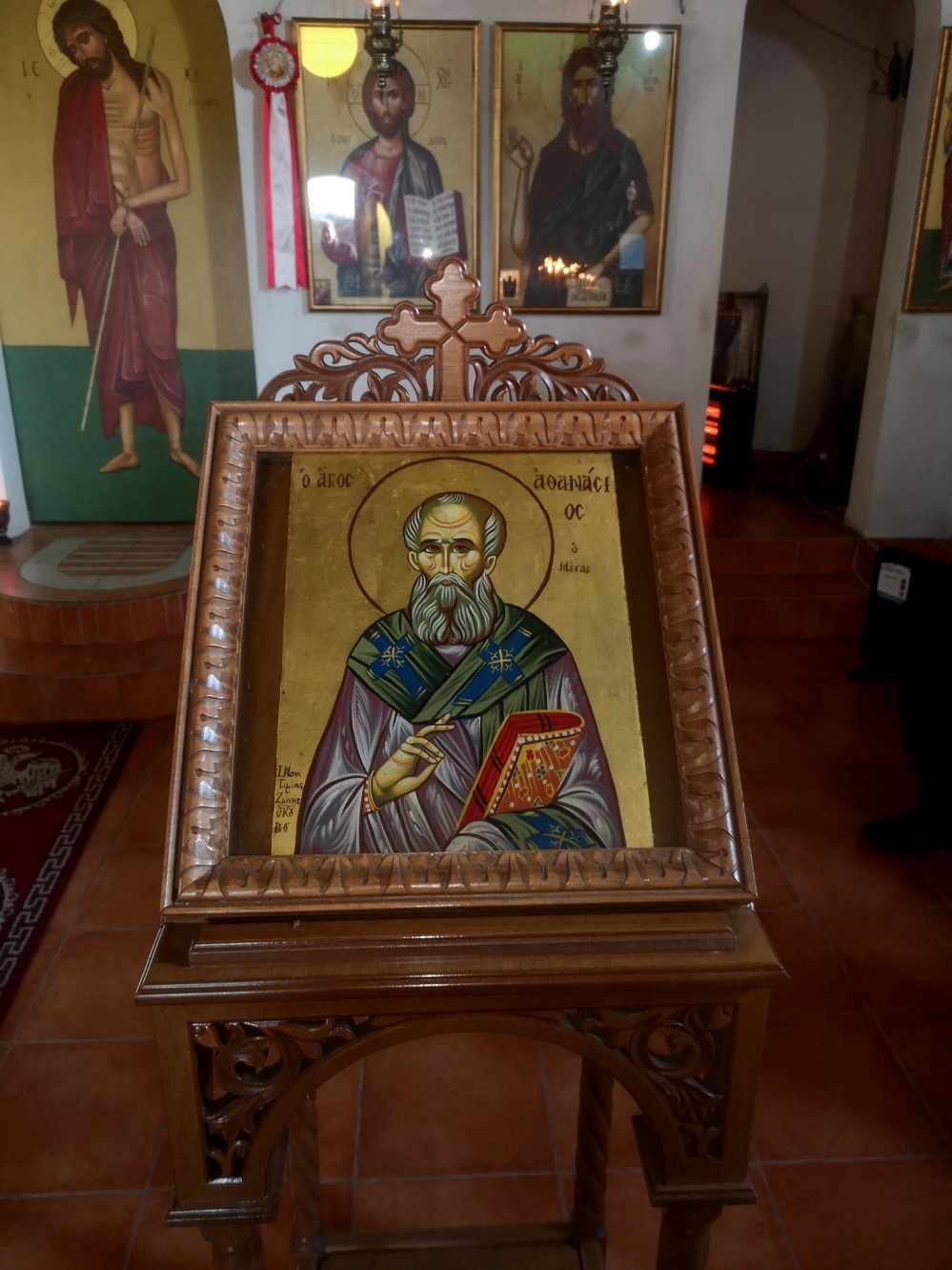 Στο εξωκλήσι του Αγίου Αθανάσιου το οποίο βρίσκεται στα δυτικά του Αγγελοκάστρου, σε μια πανέμορφη τοποθεσία, κοντά στον Αχελώο και εντός του κτήματος Αδελφών Ντόβα, τελέσθηκε σήμερα το απόγευμα, Πανηγυρικός Εσπερινός μετ᾽ αρτοκλασίας επί της εορτής της μνήμης του Αγίου Αθανασίου, Αρχιεπισκόπου Αλεξανδρείας.