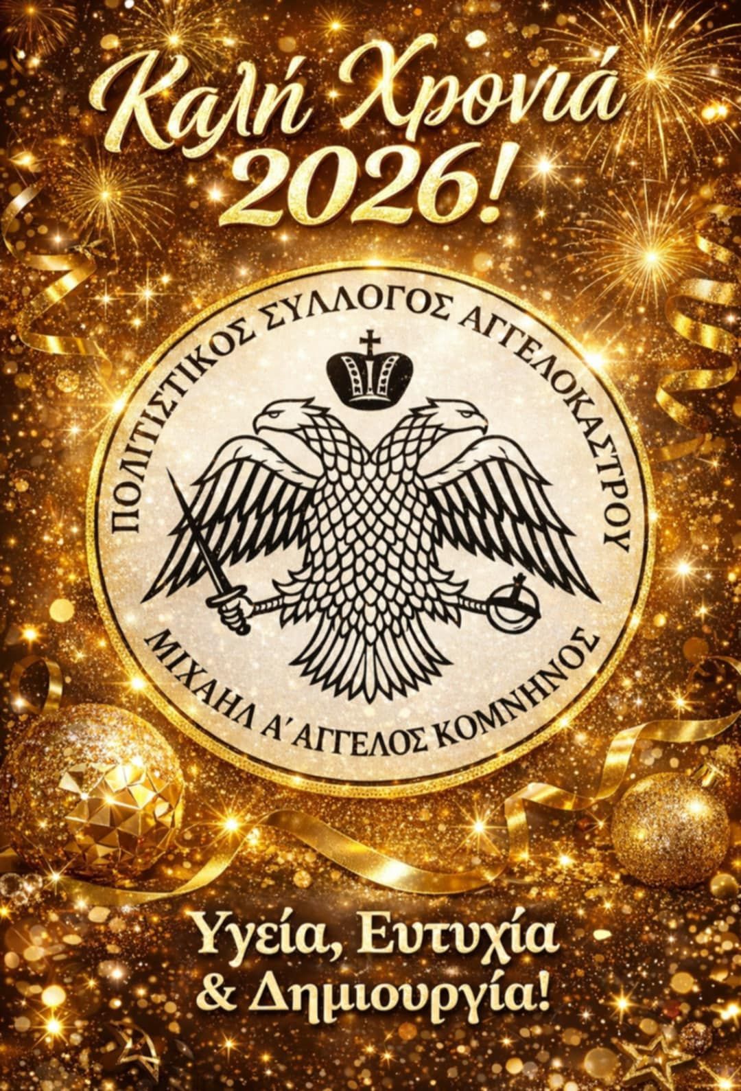 Ο Πολιτιστικός Σύλλογος Αγγελοκάστρου «Μιχαήλ Ά Άγγελος Κομνηνός» σας εύχεται καλή χρονιά με υγεία, ευτυχία και δημιουργικότητα σε όλους!