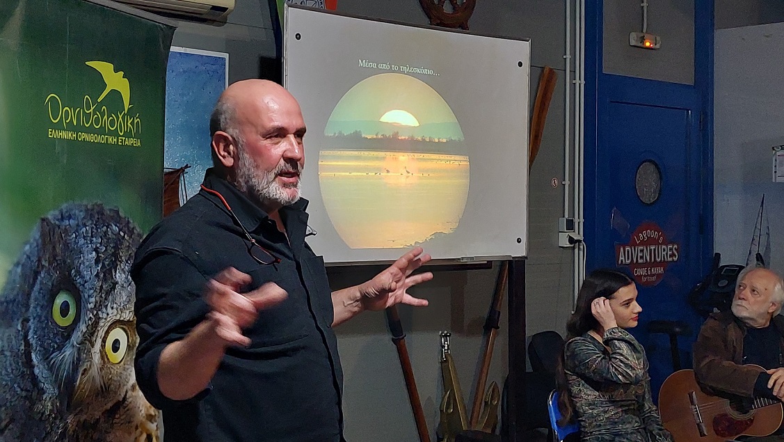 Ο Κώστας Παπακωνσταντίνου, μέλος του Δ.Σ. της Ορνιθολογικής, μίλησε για τα 60 χρόνια Μεσοχειμωνιάτικων Καταμετρήσεων Υδροβίων Πουλιών και για τις πρώτες πολυήμερες ορνιθολογικές εξορμήσεις τη δεκαετία του '80 στους υγροτόπους της Δυτικής Ελλάδας, παρέα με τον Γιάννη.