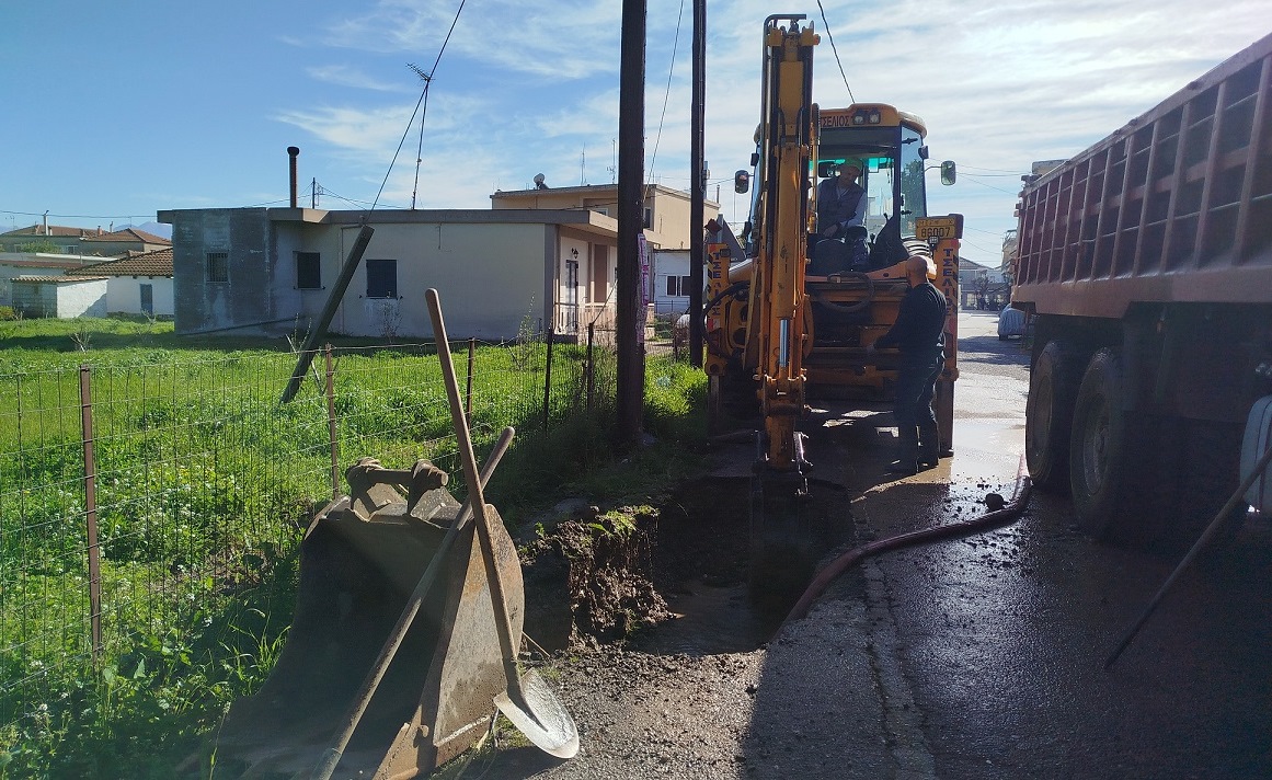 Εργασίες αποκατάστασης βλάβης από μεγάλη διαρροή σε σπασμένο σωλήνα ύδρευσης πραγματοποιήθηκαν σήμερα από Τεχνικό συνεργείο της ΔΕΥΑ Αγρινίου σε κεντρικό δρόμο στα Καλύβια.