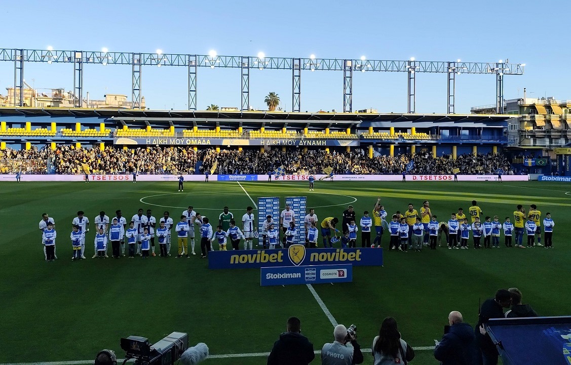 Περισσότεροι από 6 χιλιάδες φίλαθλοι γέμισαν το γήπεδο, ντυμένοι στα κίτρινα και μπλε, κρατώντας σημαίες με τον Τίτορμο, ενώ οι οργανωμένοι δημιούργησαν ένα υπέροχο κορεό το οποίο σηκώθηκε στις εξέδρες λίγο πριν από τη σέντρα της αναμέτρησης. Ακόμη στην ανακαινισμένη ανατολική κερκίδα του γηπέδου, μαθητές των σχολείων της περιοχής μας παρακολούθησαν με δωρεάν είσοδο τις σημερινές εκδηλώσεις.