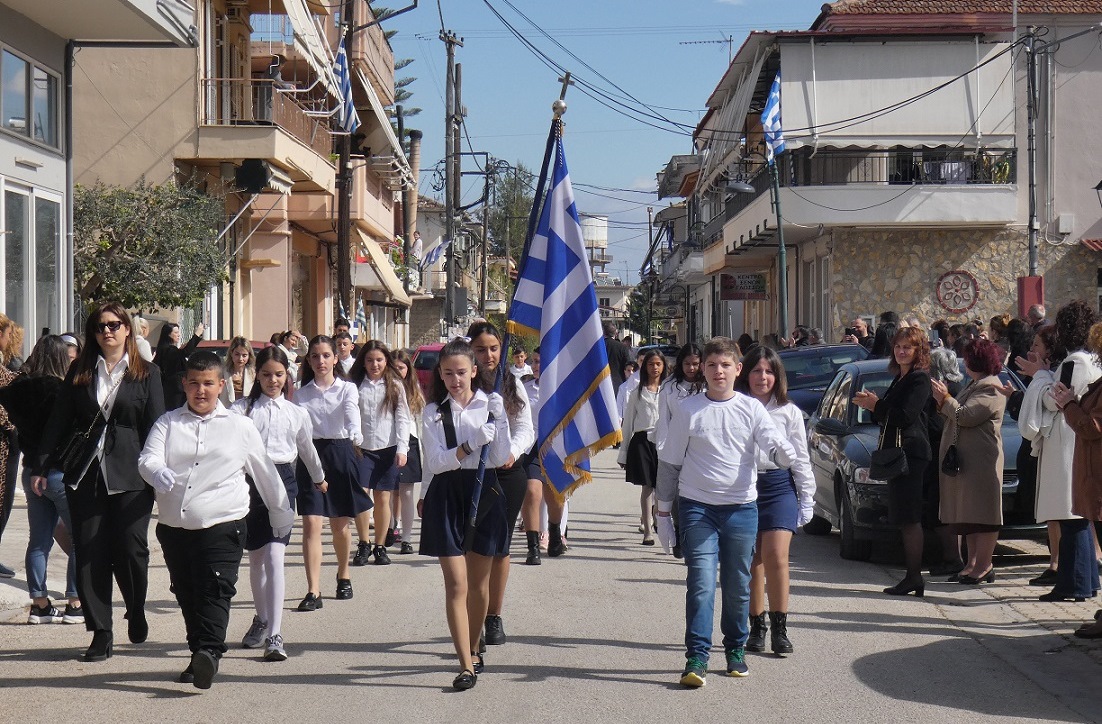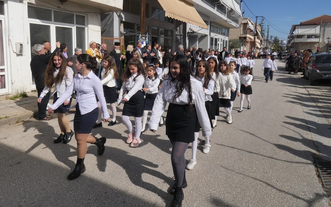 Αμέσως μετά, στους κεντρικούς δρόμους του χωριού μας, οι κάτοικοι παρακολούθησαν και χειροκρότησαν την παρέλαση των μαθητών του Νηπιαγωγείου, του Δημοτικού Σχολείου και του Γυμνασίου Καλυβίων, για να ολοκληρωθεί η πορεία στο Μνημείο των Πεσόντων, όπου τελέσθηκε η επιμνημόσυνη δέηση για τους πεσόντες υπέρ Πατρίδος.