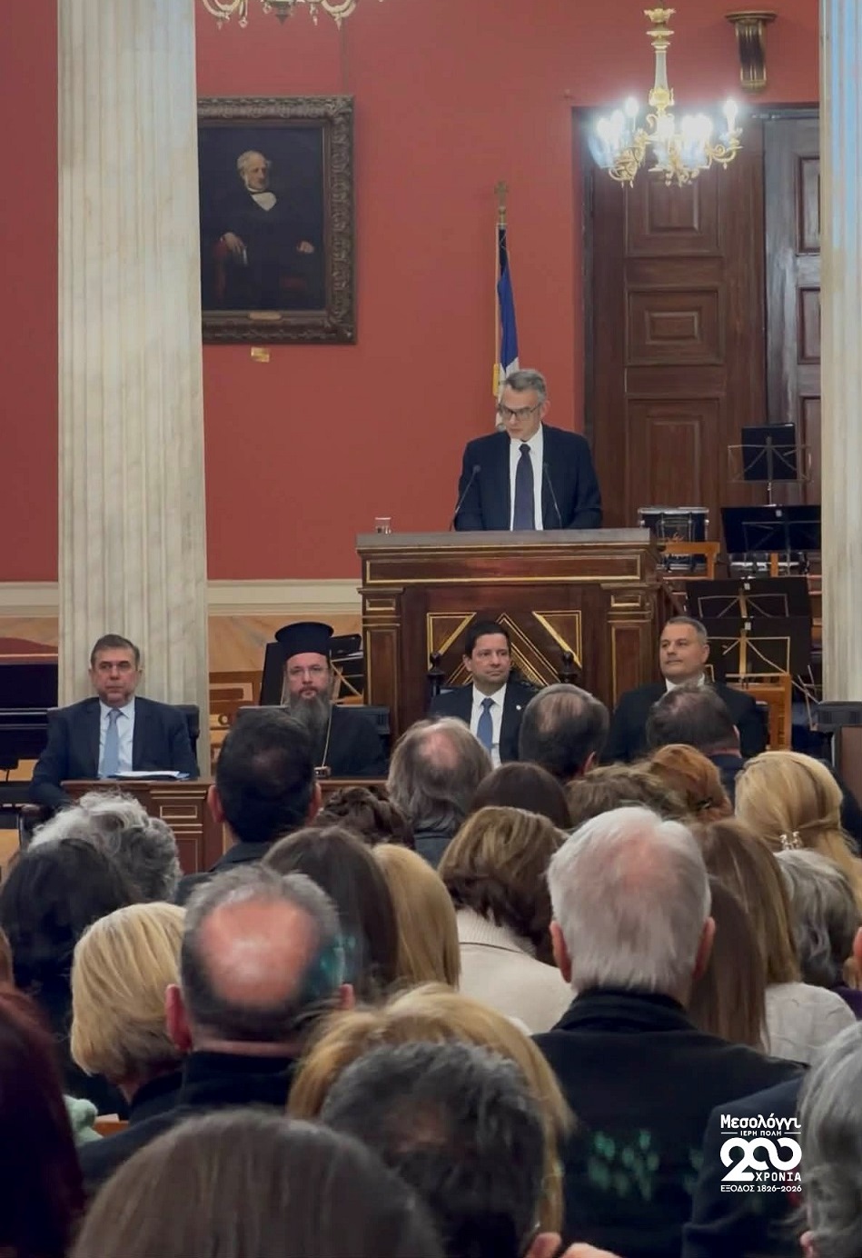Την εκδήλωση άνοιξε με προσφώνηση ο Πρύτανης του ΕΚΠΑ, Καθηγητής Γεράσιμος Σιάσος, δίνοντας το έναυσμα για μια βραδιά μνήμης. Χαιρετισμό απηύθυναν ο Σεβασμιώτατος Μητροπολίτης Αιτωλίας και Ακαρνανίας κ.κ. Δαμασκηνός, ο πρόεδρος του Συλλόγου Μεσολογγιτών Αττικής «Η Ιερά Πόλις», κ. Στάθης Τσεκούρας και ο Δήμαρχος της Ιεράς Πόλεως Μεσολογγίου, κ. Σπυρίδων Διαμαντόπουλος, ο οποίος με έκδηλη συγκίνηση αναφέρθηκε στο βαρύ χρέος της σύγχρονης Ελλάδας απέναντι στην ιστορική παρακαταθήκη της πόλης μας.