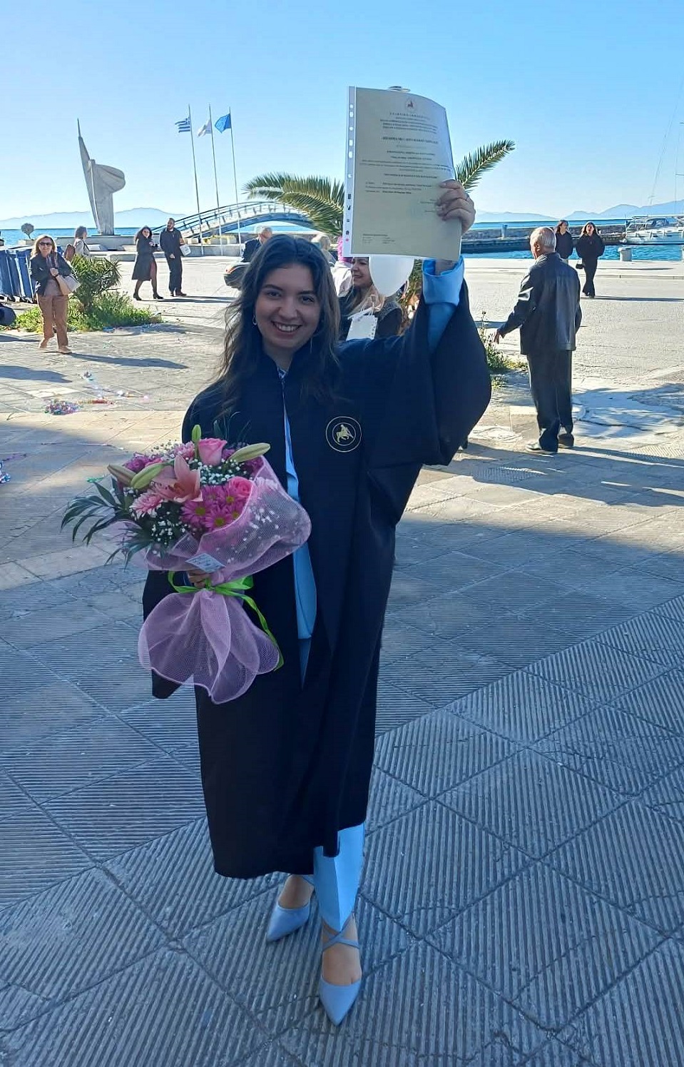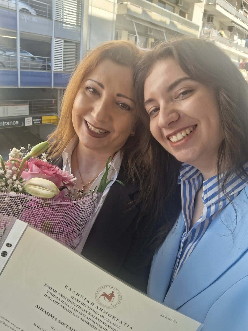 Ήταν μια ημέρα χαράς και για τους υπερήφανους γονείς της, Χαράλαμπο (από Καλύβια Αγρινίου) και Ελένη, που διαμένουν μόνιμα στην Αταλάντη Φθιώτιδας, οι οποίοι βρέθηκαν κοντά της για να την στηρίξουν και να τις ευχηθούν για την απόκτηση ενός σημαντικού μεταπτυχιακού τίτλου σπουδών!