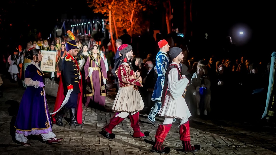 «Σήμερα δεν εκφωνείται απλώς ένας λόγος· σήμερα η ψυχή μας καλείται να συνταξιδέψει με μια ιστορία που ξεπερνά τα όρια του χρόνου και του τόπου. Μια ιστορία που διακόσια χρόνια μετά, παραμένει ζωντανή, πλήρης και ακλόνητη, ως μια κορυφή που στέκεται όρθια μέσα στο αιώνιο κύμα της μνήμης.