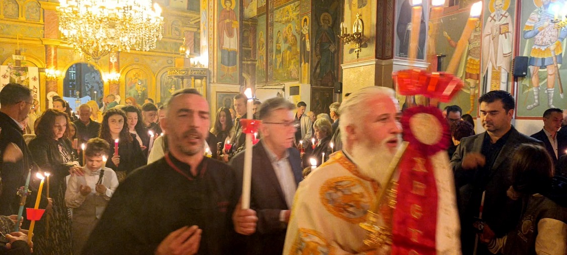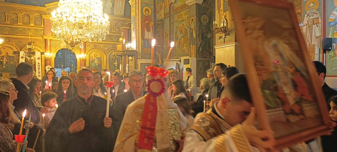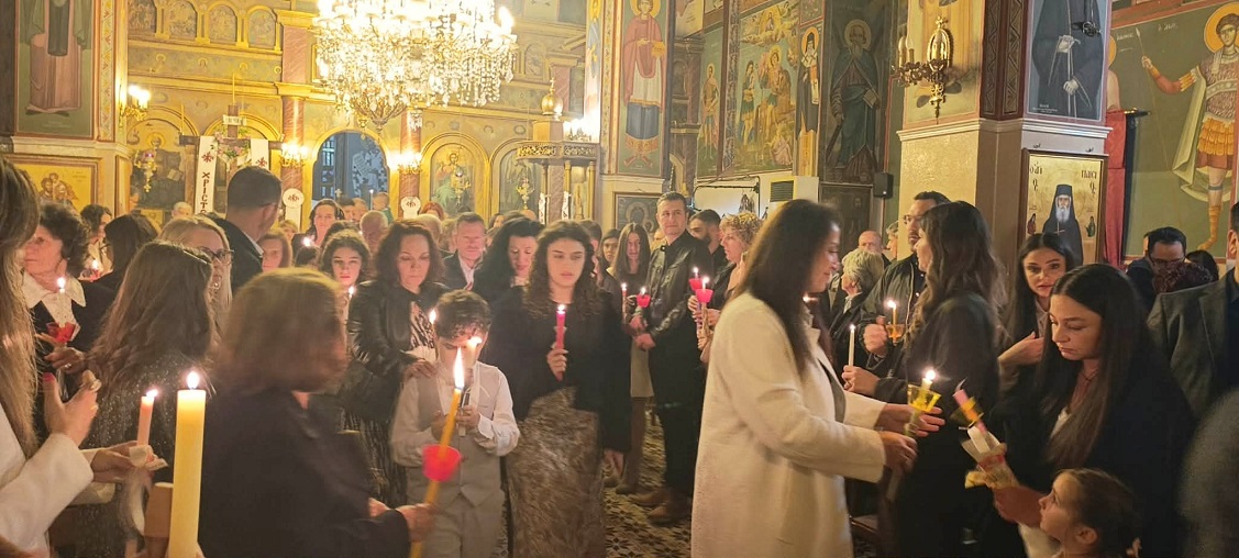 Παρακολούθησαν με ευλάβεια την Αναστάσιμη τελετή με τον ιερέα π. Θεοδόσιο Αθανασόπουλο και τους ιεροψάλτες να ψάλλουν τους ύμνους και άναψαν τις λαμπάδες τους με το το Άγιο Φως!