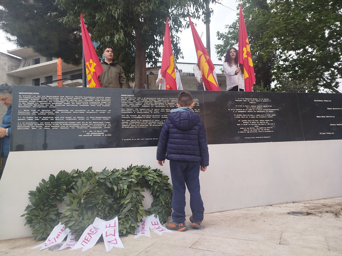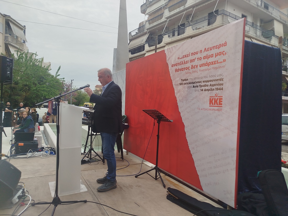 «Τιμάμε την ιστορία του λαού μας και κρατάμε σφιχτά το κόκκινο νήμα της ιστορίας, του αγώνα και της θυσίας χιλιάδων κομμουνιστών και αγωνιστών που στάθηκαν περήφανα μπροστά στο εκτελεστικό απόσπασμα για τις ιδέες τους και τον αγώνα τους απέναντι στους κατακτητές και τους ντόπιους συνεργάτες, όμως ''… εκεί που η Λευτεριά ανατέλλει απ' το αίμα (τους), θάνατος δεν υπάρχει…'', όπως έγραψε ''για τους πεσόντες στην κατοχή Αγρινιώτες και για όλους τους Ρωμιούς – θύματα του ναζισμού'' ο μεγάλος μας ποιητής Γιάννης Ρίτσος στο ''Αναστάσιμο Μνημόσυνο''.