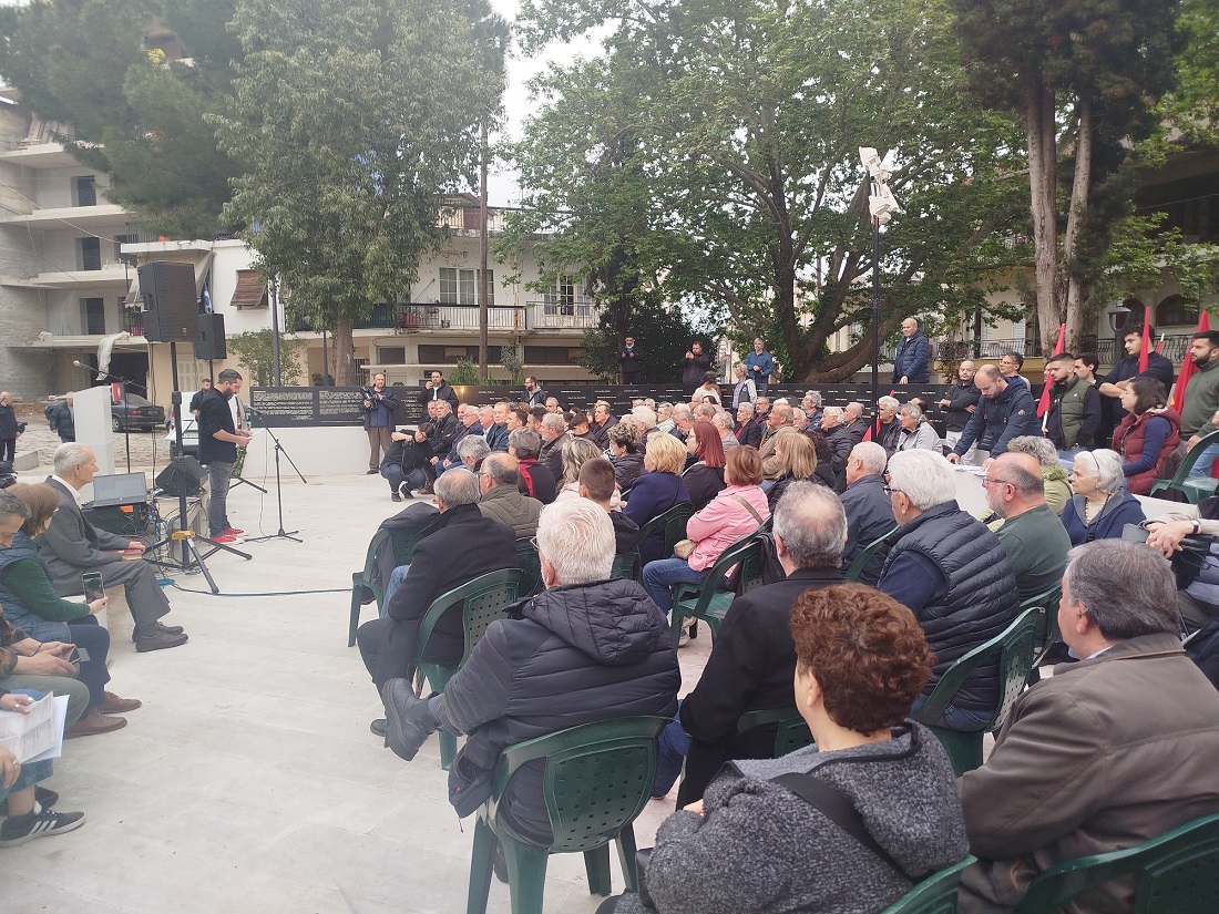 Βρισκόμαστε για ακόμη μια φορά εδώ, σε έναν ιερό τόπο του νομού μας, σε έναν από τους δεκάδες τόπους μέσα στη χώρα, που είναι ποτισμένος με το αίμα των κομμουνιστών, με το αίμα των αγωνιστών του ΕΑΜ, με το αίμα του λαού μας.