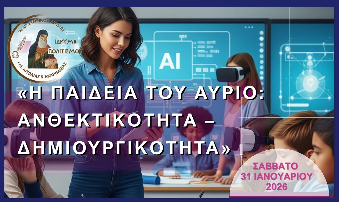 Το Ίδρυμα Πολιτισμού της Ιεράς Μητρόπολης Αιτωλίας και Ακαρνανίας «Άγιος Ευγένιος ο Αιτωλός», με αφορμή την Εορτή των Τριών Ιεραρχών, ανοίγει έναν ουσιαστικό διάλογο για τους νέους και το μέλλον, μέσα από μια εκδήλωση λόγου και σκέψης αφιερωμένη στην παιδεία.