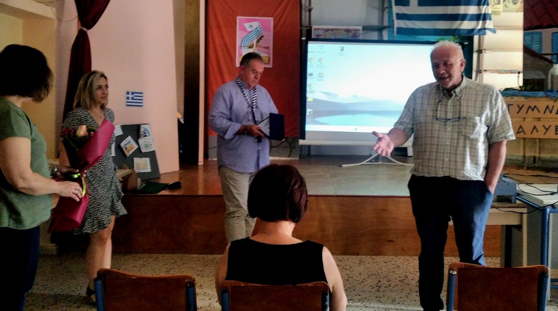 Μια όμορφη γιορτή- έκπληξη προετοίμασαν σήμερα οι συνάδελφοι του εκπαιδευτικοί, στον Διευθυντή του Γυμνασίου Καλυβίων, κ. Ευστάθιο Πίτσα που αποχωρεί, αλλά και στην Καθηγήτρια κα Μήτση Καραπάνου που συνταξιοδοτείται, μέσα σε μια έντονα συγκινησιακά ατμόσφαιρα.