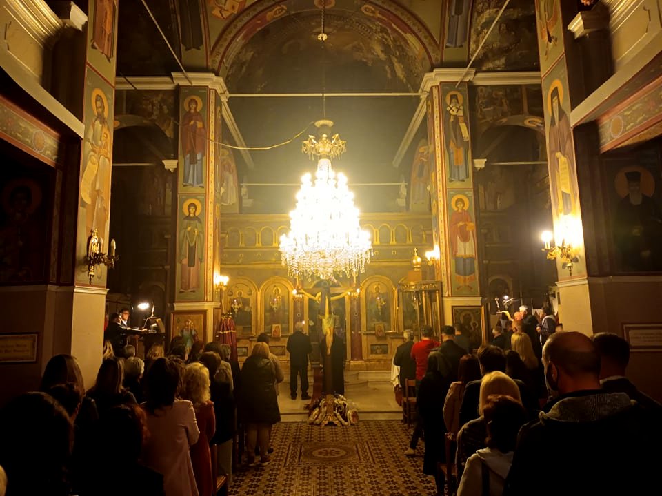 Κορύφωση του Θείου Δράματος σήμερα Μεγάλη Πέμπτη με την αναπαράσταση της Σταύρωσης του Κυρίου ημών Ιησού Χριστού και την Ακολουθία των Αγίων και Αχράντων Παθών, που τελέστηκαν στον Ιερό Ναό Αγίου Νικολάου Καλυβίων, παρουσία πιστών εντός και εκτός του ναού οι οποίοι άκουσαν το συγκλονιστικό «Σήμερον κρεμάται επί ξύλου ο εν ύδασι την γην κρεμάσας»!