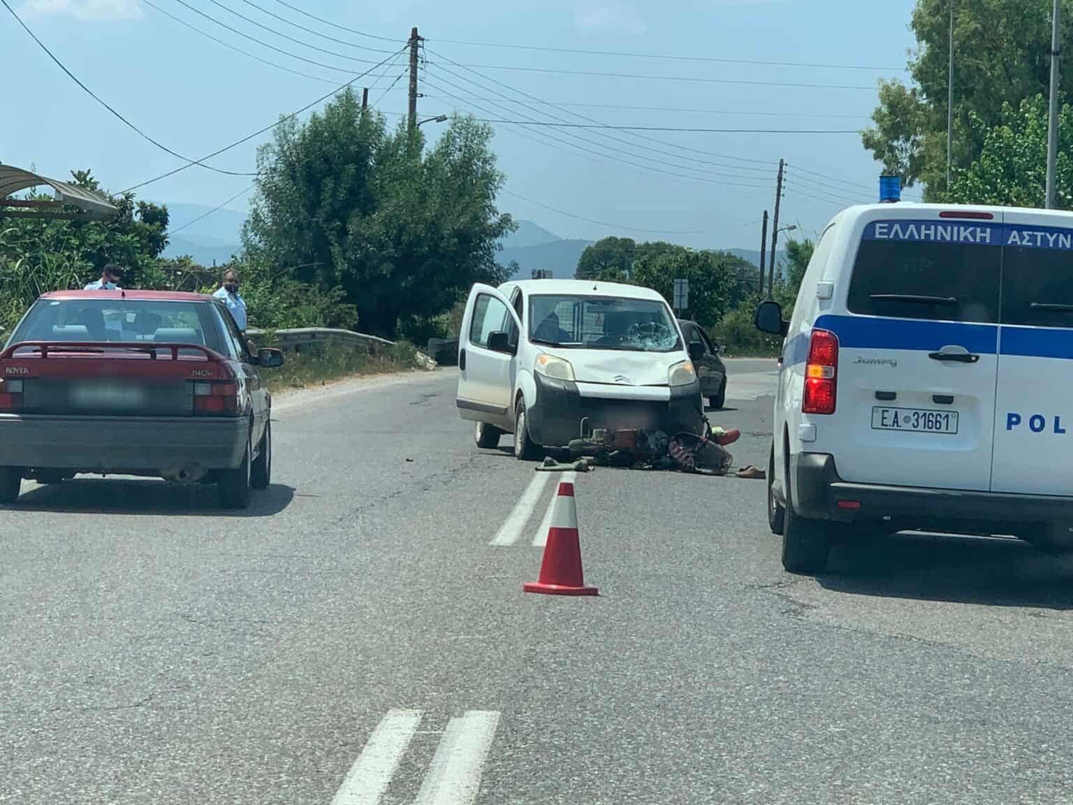 Τροχαίο σημειώθηκε περίπου στις 2 μετά το μεσημέρι στον Πλάτανο Καλυβίων, επί της επαρχιακής οδού Αγρινίου-Καλυβίων - Αγγελοκάστρου.